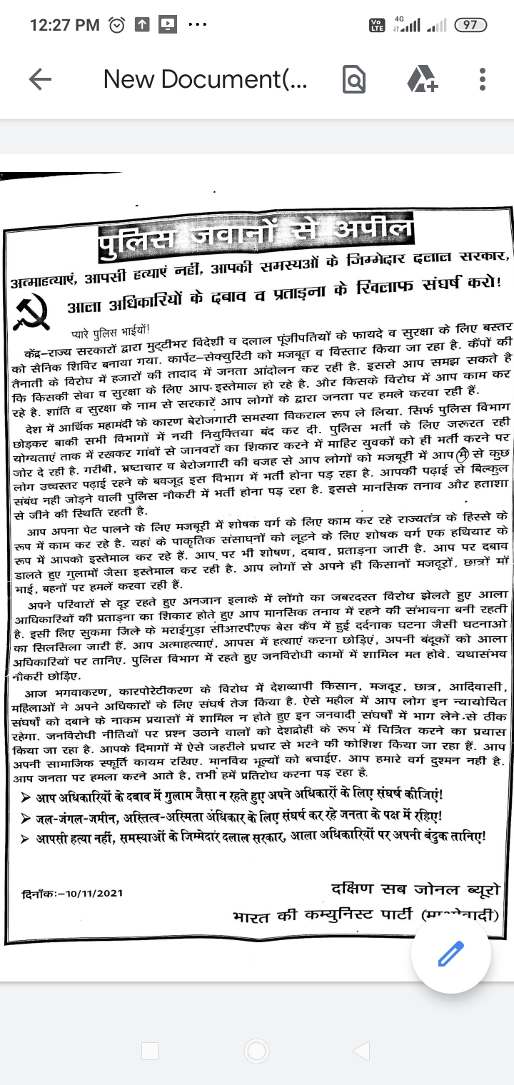 माओवादी नेता ने प्रेस नोट जारी कर जवानों और रिश्तेदारों से किया अपील