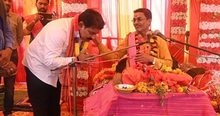 उपमुख्यमंत्री विजय शर्मा ग्राम मिनमिनिया में आयोजित भागवत कथा में हुए शामिल