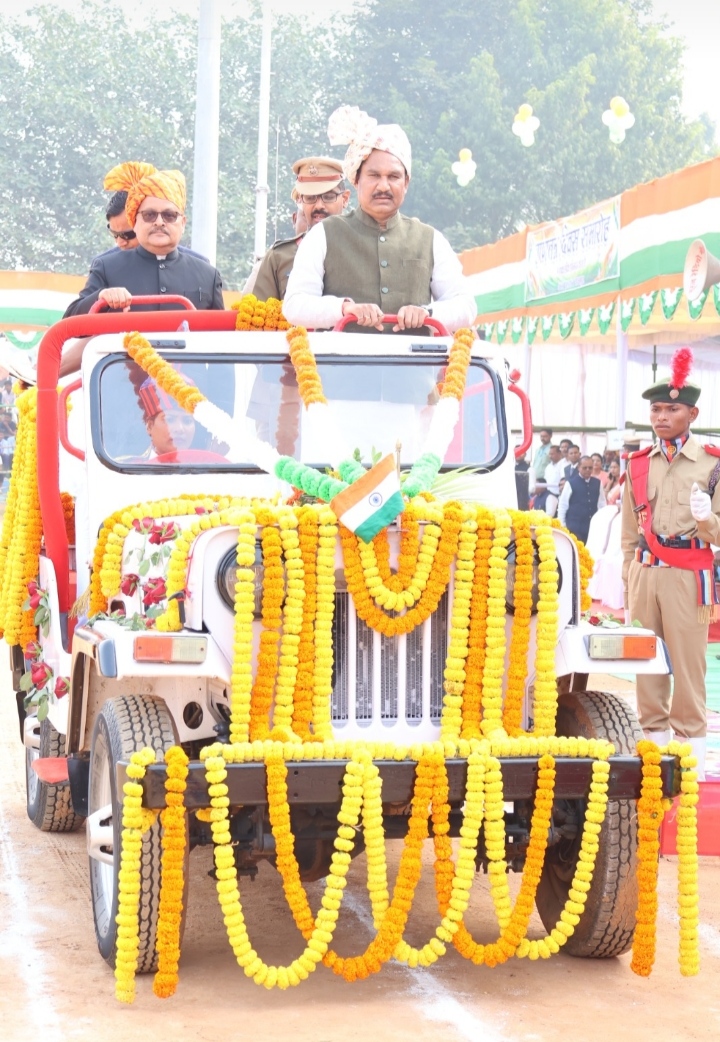 बीजापुर :- 75 वां गणतंत्र दिवस के जिला स्तरीय समारोह में अंतागढ़ विधायक विक्रम उसेंडी ने बतौर मुख्य अतिथि मिनी स्टेडियम बीजापुर में राष्ट्रीयध्वज फहराया। मुख्य अतिथि उसेंडी ने परेड की सलामी लेकर परेड का निरीक्षण भी किया। तत्पश्चात उसेंडी ने माननीय मुख्यमंत्री जी के संदेश का वाचन किया। इस दौरान हर्ष एवं उल्लास के प्रतीक रंगीन गुब्बारे आसमान में छोड़े गए। इस अवसर पर मुख्य अतिथि विक्रम उसेंडी ने शहीद जवानों के परिजनों से आत्मीय भेंट कर शॉल और श्रीफल भेंट किया। इस अवसर पर कलेक्टर अनुराग पाण्डेय एवं पुलिस अधीक्षक आंजनेय वाष्णैर्य विशेष रूप से उपस्थित थे।