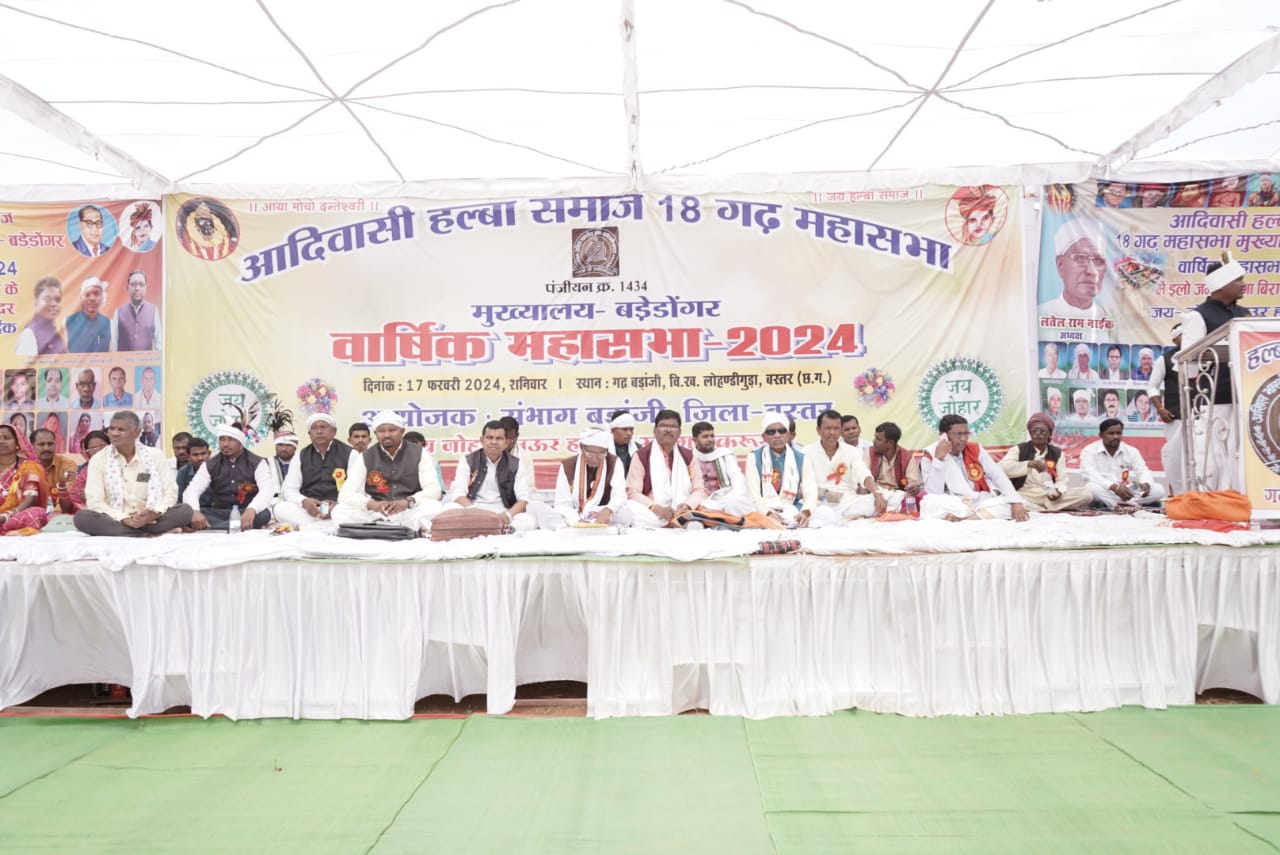 जगदलपुर। आदिवासी हल्बा समाज 18 गढ़ महासभा मुख्यालय बड़े डोंगर के तत्वावधान में संभाग बड़ांजी के पालीग्राम बड़ांजी में समाज की वार्षिक महासभा आयोजित की गई।