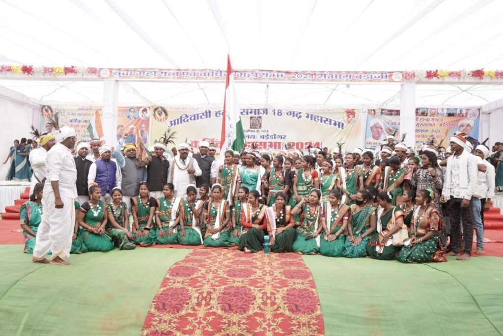 कार्यक्रम का शुभारंभ समाज की आराध्य देवी माई दंतेश्वरी एवं ग्राम देवी आया जलनी की सेवा अर्जी कर समाज के वीर शहीद सुखदेव पातर, शहीद हरचंद नाईक, वीर शहीद गैंदसिंह एवं बाबा साहेब भीमराव अंबेडकर की प्रतिमा पर माल्यार्पण व समाज प्रमुखों द्वारा ध्वजारोहण कर किया गया।युवा प्रकोष्ठ द्वारा आयोजित युवा महोत्सव सह करियर मंडई “हम होंगे कामयाब” में समाज के युवाओं के लिए शिक्षा, रोजगार, स्वरोजगार, राजनीति के क्षेत्र में अभिरुचि, सामाजिक संस्कृति के संरक्षण, संवैधानिक सरंक्षण पर कार्यशाला का आयोजन किया गया। विभिन्न उच्च पदों पर पदस्थ समाज के कार्यरत और रिटायर्ड अधिकारियों एवं सर्व आदिवासी समाज के पदाधिकारियों ने मार्गदर्शन एवं प्रशिक्षण दिया। 18 गढ़ हल्बा समाज युवा प्रकोष्ठ के अध्यक्ष विश्वनाथ मांझी एवं युवा प्रकोष्ठ महासचिव रूपेंद्र मांझी ने समाज के युवाओं को संबोधित करते हुए कहा कि हल्बा समाज का इतिहास बहुत ही प्राचीन है। समय समय पर जब भी देश एवं समाज पर विपत्ति आई है, तब तब समाज के लोग अपना सर्वस्व न्यौछावर करने में पीछे नहीं रहे। देश के स्वतंत्रता संग्राम हो या देशहित का कार्य, सभी में समाज का योगदान सर्वोच्च रहा है। समाज के उन सपूतों को आदर्श मानते हुए हमे देशहित एवं समाजहित के क्षेत्र में योगदान देना है। आज भारत विश्व में विभिन्न क्षेत्रों में अपना वर्चस्व स्थापित कर रहा है। इसमें युवाओं का योगदान महत्वपूर्ण है। युवा ही समाज के रीढ़ हैं। अतः समाज के युवाओं को आज प्रगति में अपना योगदान सुनिश्चित करना है। समाज के रीति रिवाज एवं संस्कृति, सामाजिक उत्थान ,सामाजिक विकास के लिए व्यापक चर्चा की गई। 18 गढ़ महासभा अध्यक्ष लतेल राम नाईक, उपाध्यक्ष लोकनाथ गागड़ा, महासचिव कृष्णपाल राणा एवं पूर्व अध्यक्ष शिवकुमार पात्र ने शिक्षा, स्वास्थ्य, समाज, पर्यावरण संरक्षण के क्षेत्र में काम करने वाले 18 लोगों को समाज गौरव पुरस्कार से समाज नवरत्न के रूप में सम्मानित किया गया।शिक्षा एवं अन्य क्षेत्रों में उत्कृष्ट प्रदर्शन करने वाले युवाओं को प्रतिभा सम्मान से सम्मानित किया गया। छोटेडोंगर क्षेत्र के समाज के वैद्यराज हेमचंद मांझी को देश के दूसरे सर्वोच्च पुरस्कार पद्म भूषण पुरस्कार के लिए नामित होने पर सम्मानित किया गया।