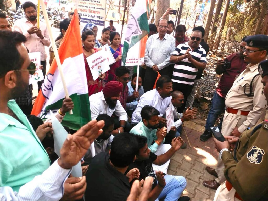 शहर कांग्रेस अध्यक्ष सुशील मौर्य, महापौर सफीरा साहू, सभापति कविता साहू, पूर्व विधायक रेखचंद जैन विधायक प्रत्याशी जतिन जायसवाल, जनपद उपाध्यक्ष जीशान कुरैशी, सरपंचों व कांग्रेस कार्यकर्ताओं ने बड़ी संख्या में जगदलपुर आयकर विभाग के दफ्तर के सामने पंहुचकर मोदी सरकार के खिलाफ जमकर नारेबाजी करते हुए विरोध प्रदर्शन किया। इस दौरान सुशील मौर्य ने कहा कि हिंदुस्तान में लोकतंत्र पूरी तरह से खत्म हो चुका है। देश की मुख्य विपक्षी पार्टी कांग्रेस के अकाउंट्स फ्रीज कर दिए गए हैं। मोदी सरकार केवल अकाउंट फ्रीज नहीं कर रही बल्कि देश का लोकतंत्र भी फ्रीज कर रही है। देश में एकमात्र नेता राहुल गांधी ही हैं, जो सदन के अंदर ही नहीं सदन के बाहर भी जनहित के बुनियादी मुद्दों को लेकर लड़ाई लड़ रहे हैं। महंगाई पर मोदी सरकार देश में कोई काम नहीं कर रही है। बेरोजगारी दूर करने के लिए कोई काम नहीं हो रहा है। राहुल गांधी न्याय यात्रा निकाल रहे हैं। यात्रा को जनता का अपार समर्थन मिल रहा है। इसके डर से भाजपा सरकार ने यात्रा में कई बार बाधाएं डालने की कोशिश की। राहुल गांधी बार- बार यह कहते आ रहे हैं कि “ना मैं डरूंगा, ना झुकूंगा और ना ही मैं रुकूंगा। इसी लक्ष्य के तहत कांग्रेस का हर कार्यकर्त्ता भाजपा सरकार की गलत नीतियों के खिलाफ विरोध करते रहेगा।