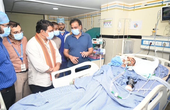 उपमुख्यमंत्री शर्मा ने रायपुर के निजी अस्पताल पहुचकर सड़क दुर्घटना में घायल शिवराम ठाकुर का हालचाल जाना