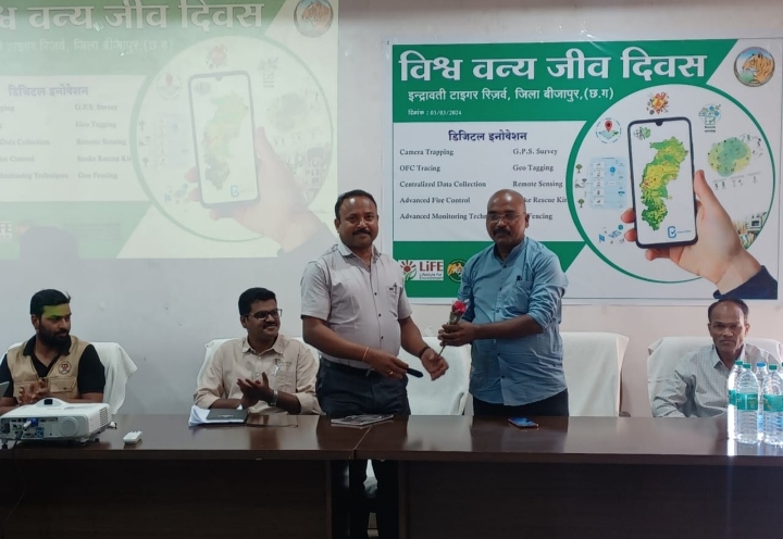 बीजापुर :- विश्व वन्य जीव दिवस के अवसर पर आज 03 मार्च को इंद्रावती टाईगर रिजर्व बीजापुर द्वारा संजय रौतिया सहायक संचालक बफर छेत्र एवम मनोज बघेल अधीक्षक कोर क्षेत्र, बीजापुर वनमंडल से उप वनमंडलाधिकारी देवेंद्र गोंड की उपस्थिति में विश्व वन्य जीव समारोह आयोजित किया गया।