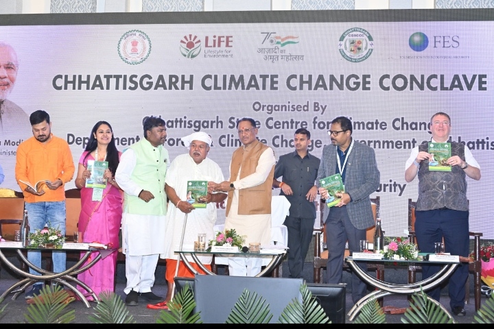 मुख्यमंत्री ने ‘‘छत्तीसगढ़ स्टेट एक्शन प्लान ऑन क्लाइमेट चेंज‘‘ तथा एक्शन प्लान की मॉनिटरिंग के लिए डेस बोर्ड, बस्तर में ट्रेडिशनल हेल्थ प्रेक्टिसेस पर केन्द्रित पुस्तक ‘‘एन्शिएंट विसडम‘‘ और बॉयोडायवर्सिटी इन कांगेर वैली पुस्तक का विमोचन किया। इस अवसर पर जलवायु परिवर्तन पर आधारित एक शॉर्ट फिल्म का प्रदर्शन किया गया।