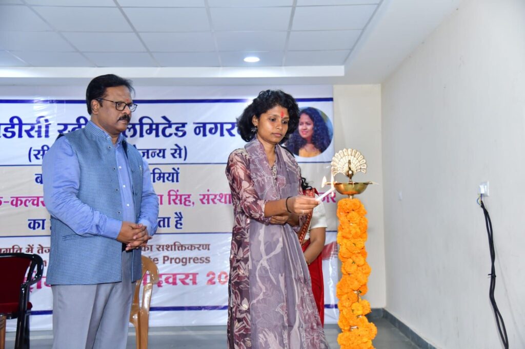 नगरनार। एनएमडीसी स्टील लिमिटेट नगरनार द्वारा स्टील प्लांट सीएसआर के सौजन्य से बस्तर की महिला उद्यमियों के विकास और सशक्तिकरण के लिए कार्यक्रम आयोजित किया गया। कार्यक्रम में आसपास के गांवों की महिलाओं को अद्यमिता विकास के लिए जागरूक किया गया।