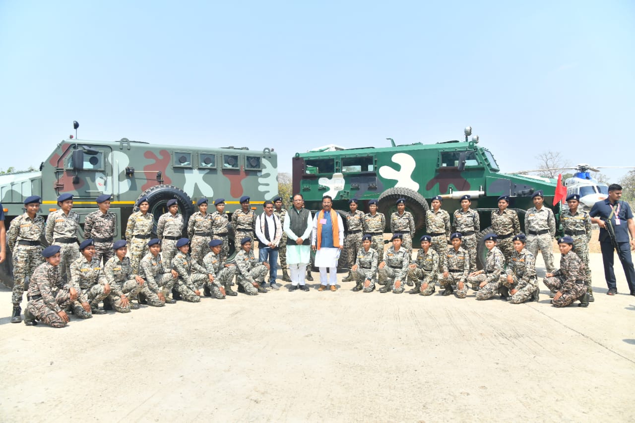 एक दिवसीय प्रवास पर दंतेवाड़ा पहुंचे मुख्यमंत्री विष्णुदेव साय ने एंटी लैंड माईन व्हीकल का अवलोकन किया और दंतेश्वरी फाईटर्स की महिला जवानों के साथ फोटो खिंचवाई। इस दौरान मुख्यमंत्री श्री साय का दंतेश्वरी फाइटर्स के तृतीय लिंग जवान रानी मंडल ने पुष्प भेंटकर स्वागत किया। इस मौके पर दंतेवाड़ा विधायक चैतराम अटामी, विधायक चित्रकोट विनायक गोयल तथा अन्य जनप्रतिनिधि, कमिश्नर बस्तर श्याम धावड़े, आईजी बस्तर रेंज सुंदरराज पी., आयुक्त जनसंपर्क मयंक श्रीवास्तव, कलेक्टर मयंक चतुर्वेदी, पुलिस अधीक्षक गौरव राय तथा जिला प्रशासन के अधिकारी मौजूद थे।