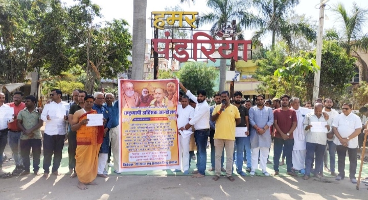 जिसपर कबीरधाम ज़िले के पंडरिया विधानसभा के विधानसभा मुख्यालय पंडरिया में आज इस देशव्यापी आंदोलन का पूरा असर देखने को मिला ।सनातन रक्षक चारो पीठो के धर्म गुरुओ द्वारा निर्धारित देश व्यापी आंदोलन में दस मिनट का देश बंद आंदोलन पंडरिया में सफल रहा । पंडरिया के सैकड़ों सनातन प्रेमियों द्वारा बीते रात से ही इस आंदोलन को नगर सहित क्षेत्र में सफल बनाने के लिए कड़ी मेहनत करते दिखे जहाँ तड़के सुबह से ही आंदोलन में शामिल होने सनातन धर्म प्रेमियों की संख्या निर्धारित स्थान पहुँचने लगी वही श्री शंकराचार्य गुरु के शिष्यों द्वारा इस आंदोलन को क्रम बद्ध किया गया जिसमें सर्वप्रथम सुबह 9.15 बजे नगर में पद रैली निकालकर श्री जगद्गुरुओ जी के संदेश को जनता तक पहुंचाया गया तथा गांधी चौक में एक घंटे का धरना प्रदर्शन कर देश के प्रधानमंत्री व राज्य के मुख्यमंत्री को आंदोलनकर्ताओं ने आड़े हाथ लेकर गौ माता हत्या के विषय पर अपनी मांगो को जनता के सामने रखी । जिसमे नगर के प्रमुख वरिष्टजन,व्यापारी बंधु,युवा साथी सहित अन्य क्षेत्रीय आमजन सनातन प्रेमी बड़ी संख्या में मौजूद रहे इसके उपरांत उपस्थित लोगों द्वारा मानव शृंखला बनाकर एक दूसरे का हाथ पकड़कर नारा लगाते हुवे अपनी मांग पर सरकार को जगाने की शपथ लिए अंत में प्रधानमंत्री नरेंद्र मोदी जी के नाम उपस्थित प्रशासनिक अधिकारी सीएमओ को ज्ञापन भी सौपा गया ।