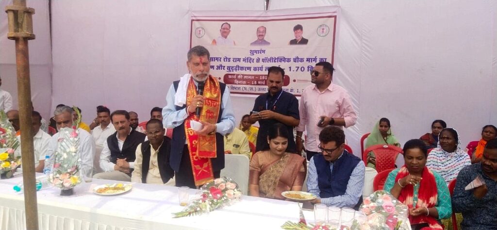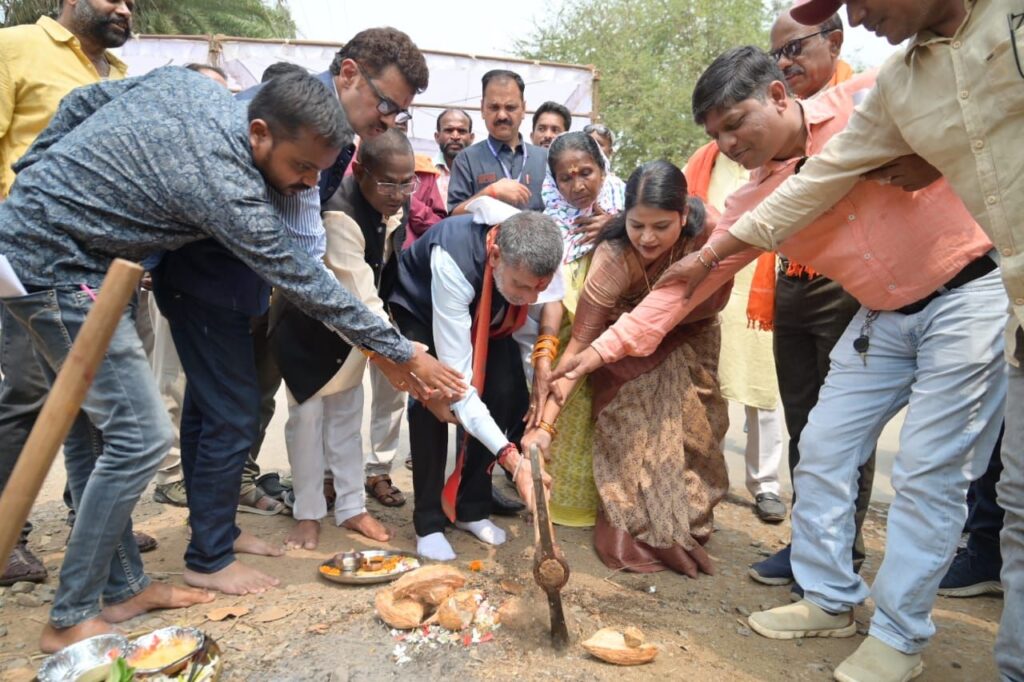 जगदलपुर। विधायक किरण देव ने शुक्रवार को शहर के दलपत सागर के पास राम मंदिर चौक पर बहुप्रतीक्षित 1.70 किलोमीटर लंबी सड़क का भूमिपूजन किया।