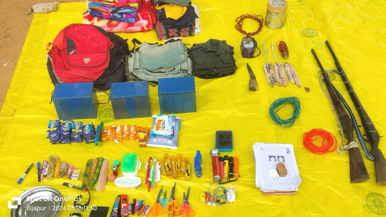 बस्तर संभाग के बीजापुर जिले में एंटी नक्सल ऑपरेशन को और तेज कर दिया गया है। जिले में दो भाजपा नेताओं की हत्या के बाद पुलिस और सुरक्षा बलों ने बीजापुर जिले नक्सलियों के खिलाफ बड़ी तगड़ी मुहिम छेड़ दी है। वहां रूटीन के तहत चलाए जा रहे नक्सल विरोधी अभियान के दौरान थाना बेदरे क्षेत्र अंतर्गत हिंगमेंटा- लंका केजंगलों में इंद्रावती एरिया कमेटी के प्लाटून नम्बर 16 कमांडर मल्लेश, माड़ डिवीज़न कंपनी नंबर 1 के कमांडर अरुण उर्फ रुपेश और 20- 25 अन्य नक्सलियों की उपस्थिति की सूचना के आधार पर डीआरजी बीजापुर एवं थाना बेदरे का संयुक्त बल 14 मार्च 24 को नक्सल विरोधी अभियान पर निकला था।अभियान के दौरान 14 मार्च की शाम 5 बजे हिंगमेटा के जंगल में पुलिस और नक्सलियों के बीच मुठभेड़ हो गई। मुठभेड़ में दो नक्सलियों को मार गिराने में पुलिस बल को सफलता मिली। पुलिस बल को भारी पड़ता देख नक्सली जंगलों में भाग निकले। मुठभेड़ थमने के बाद सुरक्षा बल द्वारा हिंगमेटा में नक्सलियों के कैंप को ध्वस्त किया गया। सर्चिंग के दौरान 2 भरमार, टिफिन बम, डेटोनेटर, मेकेनिज्म, जिलेटिन स्टीक, कार्डेक्स वायर, सेफ्टी फ्यूज, इलेक्ट्रिक वायर, चाकू, नक्सली वर्दी, पिटठू, बैटरी एवं अन्य दैनिक उपयोग की सामग्री बरामद की गई।