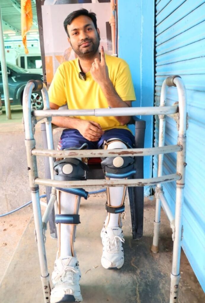 दिव्यांग भाई -बहन ने घर पर मतदान कर लोगों को मतदान करने का दिया संदेश