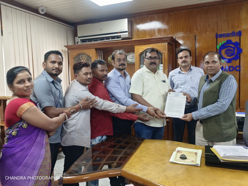 जगदलपुर। मेटल माइंस वर्कर्स यूनियन (इंटक) बचेली के अध्यक्ष देबाशीष पॉल और सचिव आशीष यादव के नेतृत्व में मज़दूरों ने परियोजना चेक पोस्ट से पैदल रैली के रूप में प्रशासनिक भवन पहुंच कर अधिशासी निदेशक बी. वेंकटेश्वरलु को ज्ञापन सौंपा और परियोजना में नियमित श्रेणी के कार्यों मे नियोजित ठेका श्रमिकों को रेगुलराइज किये जाने की मांग रखी।