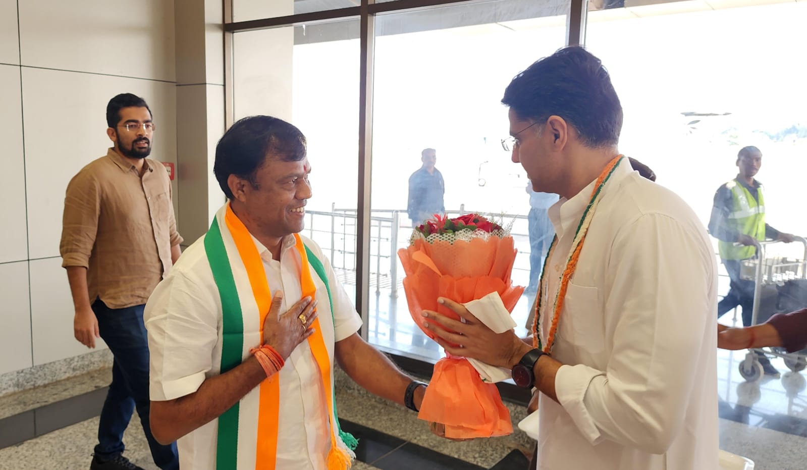 जगदलपुर। छत्तीसगढ़ प्रदेश कांग्रेस कमेटी के प्रभारी सचिन पायलट शुक्रवार की शाम जगदलपुर पहुंचे। यहां मां दंतेश्वरी एयरपोर्ट पर सचिन पायलट का स्वागत प्रदेश कांग्रेस अध्यक्ष दीपक बैज, प्रदेश कांग्रेस कमेटी के प्रभारी महामंत्री मलकीत सिंह गैदू, बस्तर शहर जिला कांग्रेस कमेटी के अध्यक्ष सुशील मौर्य समेत अन्य नेताओं ने किया।