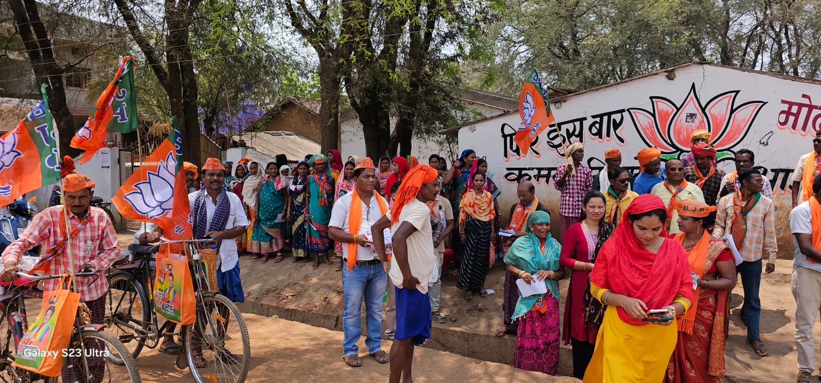 नगरनार। बस्तर लोकसभा सीट के भाजपा के प्रत्याशी महेश बघेल के समर्थन में आज भी नगरनार मंडल के बीजेपी कार्यकर्ताओं ने पूर्व मंडल अध्यक्ष अर्जुन सेठिया के नेतृत्व में रैली निकाल कर लोगो से बीजेपी के पक्ष में वोट करने की अपील की। आज के जनसंपर्क में बीजेपी महिला मोर्चा अध्यक्ष गीता मिश्रा, रेनू बघेल पूर्व सरपंच के अलावा रमेश मिश्रा सहित दर्जनों महिला पुरुष बीजेपी कार्यकर्ता शामिल रहे।