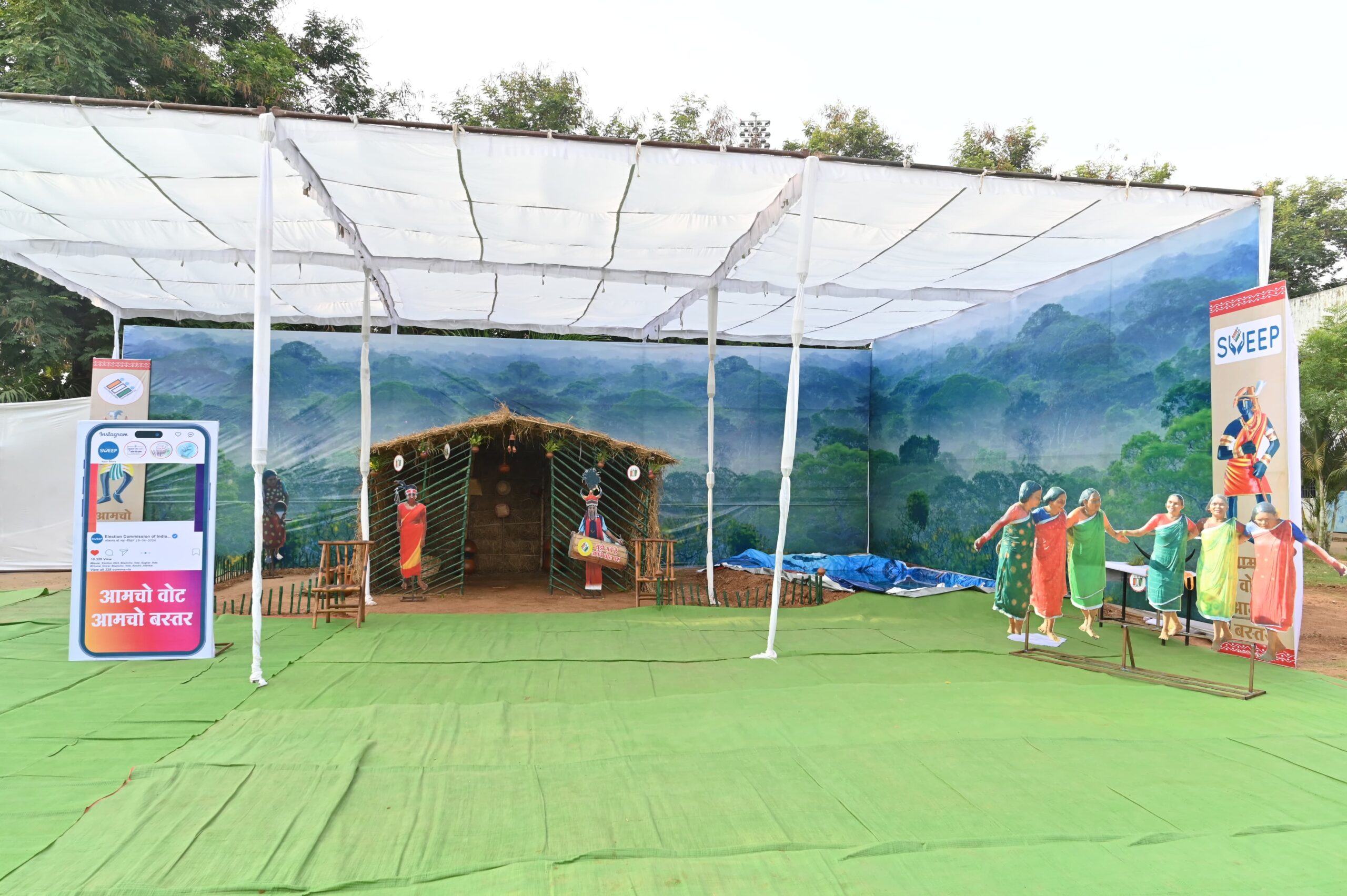 जगदलपुर। बस्तर लोकसभा सीट के लिए 19 अप्रैल को संपन्न हुए मतदान के लिए नगर निगम जगदलपुर द्वारा शहर के भगत सिंह स्कूल स्थित आदर्श मतदान केंद्र में बस्तर की संस्कृति की झलक पर आधारित मॉडल वाला सेल्फी जोन बनाया गया था। इस मॉडल सेल्फी बूथ में भगत सिंह स्कूल पोलिंग बूथ में आए मतदाताओं में सेल्फी लेने की होड़ मची रही। शहर के अन्य क्षेत्रों मतदाता भी मतदान करने के पश्चात भगत सिंह स्कूल पहुंच कर बस्तर की झलक वाले मॉडल के साथ सेल्फी लेने के लिए पहुंचते रहे। इस मॉडल की मतदाताओं द्वारा प्रशंसा भी की जा रही है। साथ ही भगत सिंह स्कूल में बने बस्तर की झलक मॉडल की राज्य चुनाव आयोग छत्तीसगढ़ ने भी सराहना भी की है।