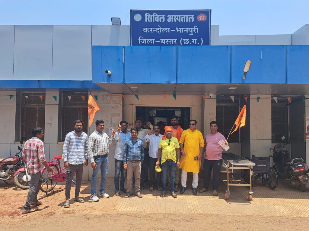 जगदलपुर। करंदोला भानपुरी में हनुमान जी का जन्मोत्सव बड़े ही धूमधाम से मनाया गया। जिम परिसर में महाबली हनुमान की पूजा अर्चना कर हनुमान चालीसा का पाठ किया गया। पूजा अर्चना के पश्चात सिविल अस्पताल भानपुरी में फल एवं प्रसाद का वितरण किया गया। संध्या में भंडारा का आयोजन कर सभी श्रद्धालुओं को प्रसाद वितरण किया गया। कार्यक्रम का आयोजन संतोष बघेल, भूषण गुप्ता, कृष्णा साहू, लोकेश पांडे, राजू तिवारी, रवि नामदेव, संजय तिवारी, उमाकांत कश्यप, गजेंद्र सिंह ठाकुर, पुरुषोत्तम नेताम, राकेश जैन, अरविंद वर्मा, खुलेश्वर कश्यप, अंजन मिस्त्री, छबिल ठाकुर, तरुण बघेल, श्रेयांश जैन, प्रभांशु शर्मा, रितेश तिवारी ,आदित्य तिवारी एवं ग्राम के युवाओं द्वारा किया गया। सैकड़ों श्रद्धालुओं ने प्रसाद ग्रहण किया।
