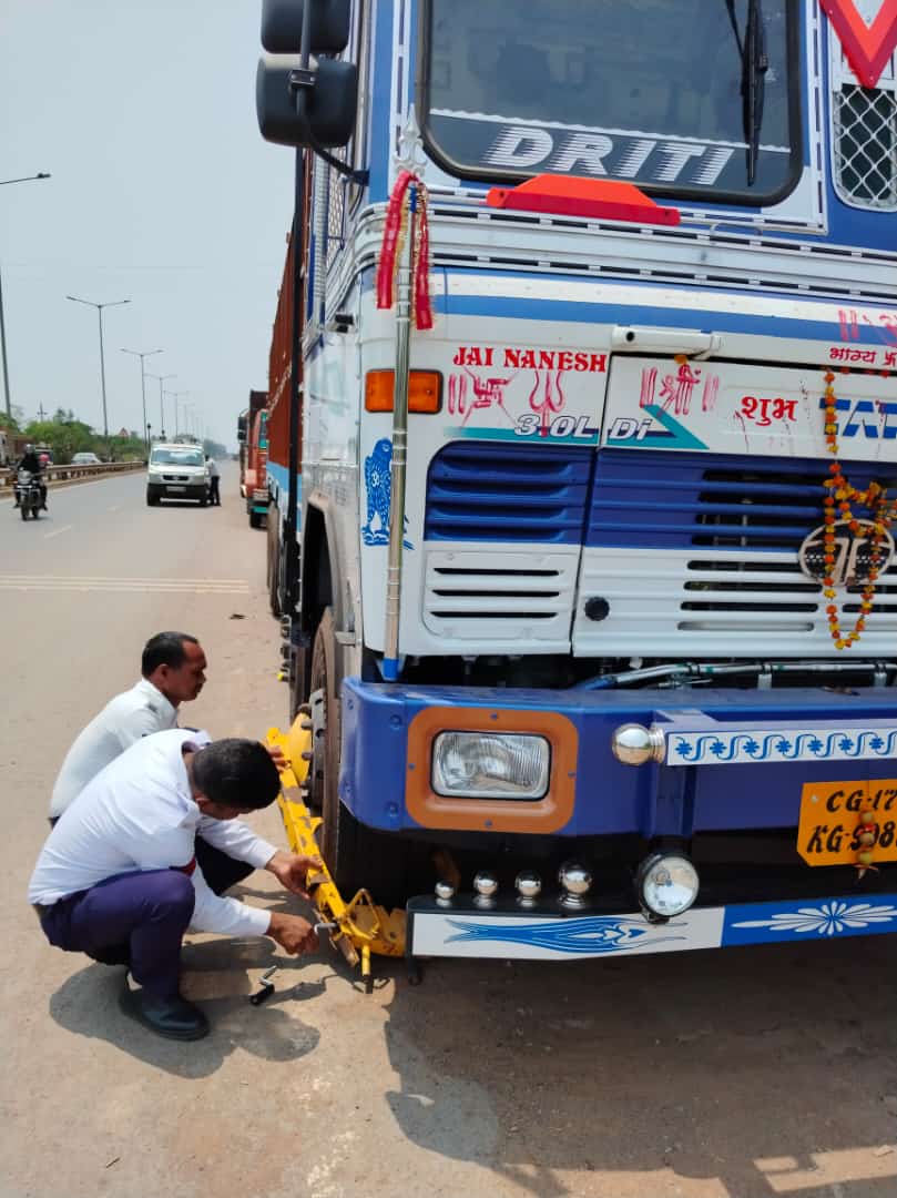 जगदलपुर। आज दिनांक को पुलिस अधीक्षक शलभ सिन्हा के आदेशानुसार तथा अतिरिक्त पुलिस अधीक्षक महेश्वर नाग के मार्गदर्शन में सड़क पर खड़े वाहनों से होने वाले दुर्घटनाओं को दृष्टिगत रखते हुए यातायात पुलिस जगदलपुर द्वारा नेशनल हाईवे एवं अन्य मार्गो के किनारे अवैध पार्किंग करने वाले भारी वाहनों पर व्हील लॉक लगाकर चालानी कार्रवाई की गई। इस दौरान शहर के विभिन्न मार्ग, एनएच 30, गीदम रोड, आड़ावाल रोड, बोधघाट आदि क्षेत्रों में अनधिकृत रूप से खड़े 35 ट्रको एवं अन्य वाहनों पर कार्रवाई की गई। इस कार्रवाई में यातायात प्रभारी आभिजीत भदौरिया, एएसआई राजकुमार आडिल, एएसआई प्रवीण जोशी, एएसआई परिमल दास एवं यातायात विभाग के अन्य कर्मचारी मौज़ूद रहे। यह कार्रवाई आगे भी जारी रहेगी।