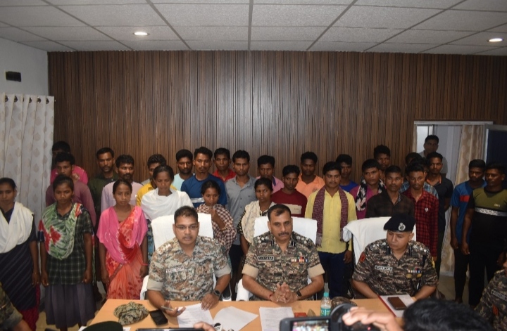 बीजापुर :- जिले में चलाये जा रहे माओवादी उन्मूलन अभियान के दौरान डीआरजी, बस्तर फाईटर, STF एवं कोबरा 202, 210 केरिपु 168, 85, 222वी वाहिनी के द्वारा किये जा रहे संयुक्त प्रयासो से छ0ग0 शासन की पुनर्वास एवं आत्मसर्पण नीति से प्रभावित होकर निम्नलिखित माओवादियों ने आज दिनांक 14/05/2024 को उप महानिरीक्षक केरिपु, बीजापुर एस0के0 मिश्रा, पुलिस अधीक्षक बीजापुर डॉ0जितेन्द्र कुमार यादव, कमांडेंट 222वी बटालियन केरिपु विनोद मोहरिल, कमांडेंट, 85वी बटालियन केरिपु व्ही0तुसिंग, कमांडेंट 168 बटालियन केरिपु विक्रम सिंह, कमांडेंट कोबरा 202 अमित कुमार, कमांडेंट कोबरा 210 अशोक कुमार, अतिरिक्त पुलिस अधीक्षक चन्द्रकांत गवर्ना, अनुविभागीय अधिकारी पुलिस भैरमगढ़ तारेश साहू, अनुविभागीय अधिकारी पुलिस आवापल्ली तिलेश्वर यादव, अनुविभागीय अधिकारी पुलिस भोपालपटनम् मयंक रणसिंह, उप पुलिस अधीक्षक ऑप्स सुदीप सरकार, उप पुलिस अधीक्षक डीआरजी बीजापुर विनित साहू के समक्ष माओवादियो की खोखली विचारधारा, भेदभाव पूर्ण व्यवहार, उपेक्षा व प्रताड़ना से तंग आकर एवं छत्तीसगढ़ शासन के पुनर्वास एवं आत्मसमर्पण नीति से प्रभावित होकर आत्मसमर्पण किया ।