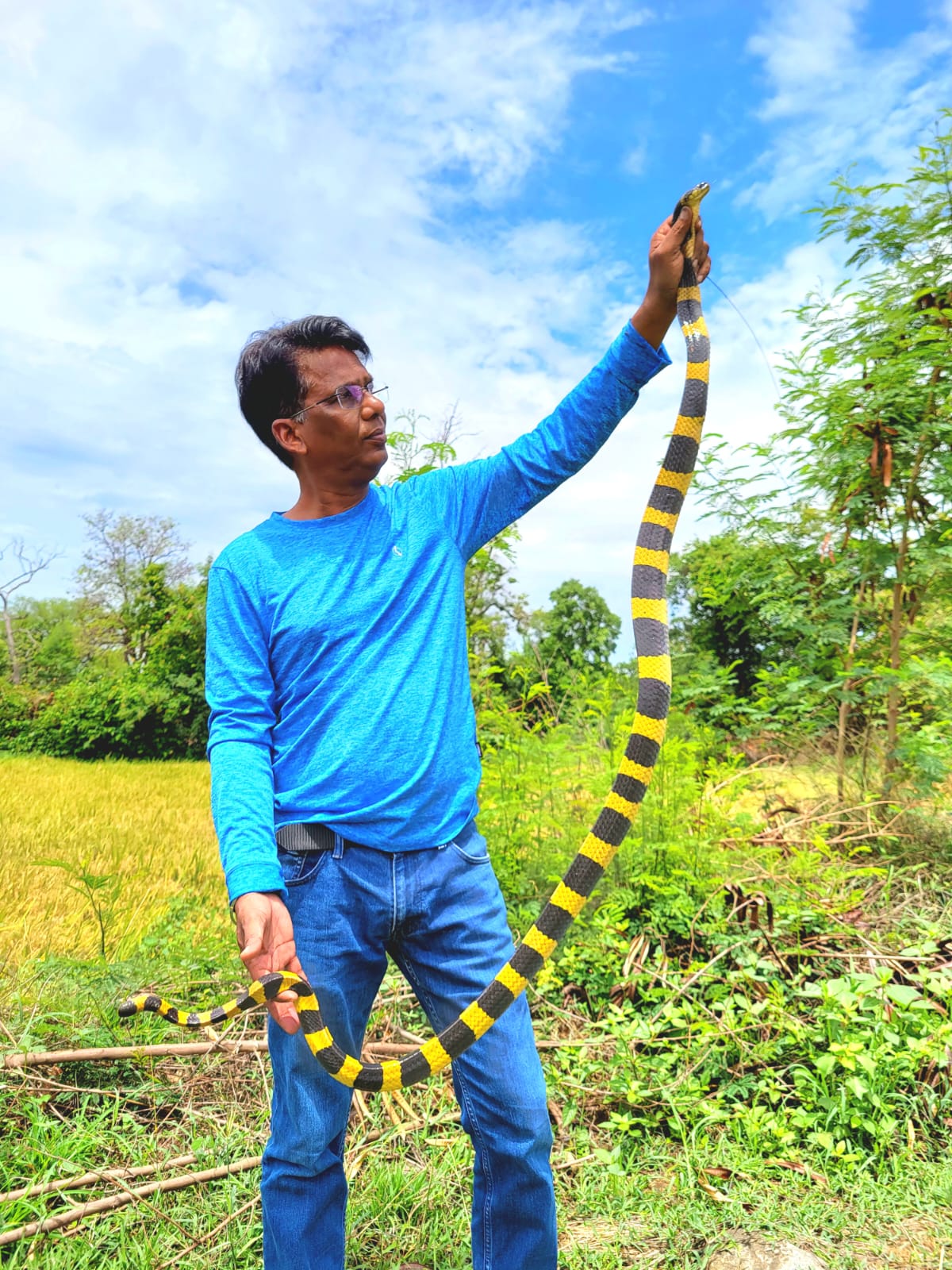 सर्प संरक्षक जगेंद्र भारद्वाज ने सांप के बारे में जानकारी देते हुए बताया कि मालकुंवर गांव में पकड़ा गया सांप को छत्तीसगढ़ में अहिराज नाम से जाना जाता है। इसका इंग्लिश नाम बैंडेड करैत है और इसकी लंबाई 6 से 7 फी ट तक होती है। इसके शरीर पर बनी काली पीली पट्टी की वजह से इसे आसानी से पहचाना जा सकता है। इसे छत्तीसगढ़ में काफी सम्मान से देखा जाता है। वैसे यह केवल बारिश के मौसम में और केवल रात में निकलता है। पर बेमौसम बारिश होने पर यह सांप भ्रमवश बाहर निकल आया है। यह करैत प्रजाति का काफी विषैला सर्प है पर बहुत शर्मीला भी होता है।इसलिए इसके द्वारा आज तक किसी को डसे जाने की कोई खबर नही है। यह सांप खतरा होने पर आक्रमण करने के बजाय अपना सिर आपने शरीर में छुपा लेता है। यह नायाब सर्प इस इलाके में विलुप्ति के कगार पर है।जगेंद्र भारद्वाज ने सबसे अपील करते हुए कहा है कि अगर कोई सांप दिखे तो उसे मारें नहीं, बल्कि उसे निकल जाने के लिए रास्ता दें या फिर लंबे डंडे से उठाकर बाहर निकाल दें।