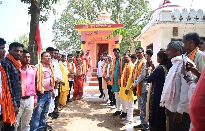 कवर्धा,,,अपने एक दिवसीय विधानसभा प्रवास पर पहुँचे उप-मुख्यमंत्री विजय शर्मा साहू समाज द्वारा निर्मित शनि मंदिर प्राण प्रतिष्ठा कार्यक्रम में शामिल हुए । साहू समाज द्वारा निर्मित मंदिर में गुरुवार को शनि देव की मूर्ति स्थापित की गई जिसमें बड़ी संख्या में समाज के लोग एवं ग्राम वासी शामिल हुए । इस अवसर पर भगवान शनिदेव की पूजा अर्चना कर उप मुख्यमंत्री विजय शर्मा ने आशीर्वाद लिया ।