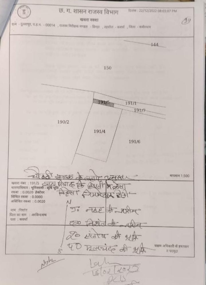 नायब तहसीलदार हुलेश्वर पटेल से पूरे मामले पर चर्चा करने पर उन्होंने भी संबंधित आवेदक के जमीन को सरकारी बताकर यह स्पष्ट किया है कि उपरोक्त जमीन को नहर नाली विस्तारीकरण के लिए ही भू अर्जन करके मुआवजा राशि प्रदान की जा चुकी है।