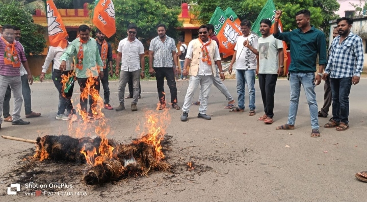 बीजापुर/ बीजापुर नगर के शिव मंदिर चौक में भारतीय जनता पार्टी युवा मोर्चा बीजापुर के द्वारा राहुल गांधी के द्वारा संसद में दिए गए हिंदू विरोधी भाषण के विरोध में पुतला दहन कर विरोध प्रदर्शन किया। भाजपा के युवा मोर्चा जिलाध्यक्ष बलदेव उरसा नेतृत्व में कार्यकर्ताओं ने राहुल गांधी के पुतला दहन कर राहुल गांधी मुर्दाबाद के नारे लगाते हुए कांग्रेस पार्टी को लताड़ने का काम किया है। जिस प्रकार कांग्रेस पार्टी और उनके सहयोगी दलों द्वारा हिंदू विरोधी भाषण बाजी कर एक विशेष समुदाय को संरक्षण देने का काम कर रहे हैं यह देश के लिए बहुत ही शर्मनाक बात है इस देश में 80% हिंदू आबादी वाले देश कांग्रेस पार्टी को आजादी के बाद लगातार सत्ता में बैठाकर रखी और वहीं कांग्रेस पार्टी के नेता सदन के नेता प्रतिपक्ष सांसद राहुल गांधी द्वारा हिंदू समाज और हिंदुओं को हिंसक कहना अति निंदनीय है युवा मोर्चा के कार्यकर्ता पूरे जोर-शोर के साथ इस भाषण की कड़ी निंदा करती है और कांग्रेस की इस मानसिकता को पूरे देश को समझने की जरूरत है जिन्होंने आज हिंदू समाज को गाली देने का काम किया है। इस अवसर किसान मोर्चा जिलाध्यक्ष घासीराम नाग, एसटी मोर्चा जिलाध्यक्ष जिलाराम राना, भाजपा नेता अजय सिंह, जिला उपाध्यक्ष लव कुमार रायडू, पार्षद नदकिशोर राना, संजय रिवानी,युवा मोर्चा प्रदेश कार्यसमिति सदस्य फूलचंद गागड़ा, हरिहर साहनी, युवा मोर्चा महामंत्री मथियस कुजूर, दीपक चौहान, हरिश उप्पल, गोलू नाग, हितेंद्र नाग, हितेश साहनी, गिरजा शंकर तामडी, हरीश बेलसरिया, विष्णु साहू, रामधर जुर्री, पूजा पोंदी, सुनीता तिवारी, साई किरण चेट्टी, पवन नाग, विनीत, ज्ञानदीप बघेल सहित युवा मोर्चा के पदाधिकारी एवं कार्यकर्ता बड़ी संख्या में उपस्थित रहे ।