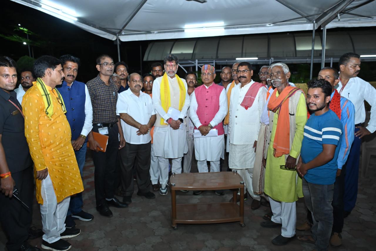 जगदलपुर :- बस्तर गोंचा महापर्व में शामिल होने हेतु प्रति वर्ष की भांति इस वर्ष भी परंपरानुसार 360 घर आरण्यक ब्राम्हण समाज का प्रतिनिधि मंडल ने मुख्यमंत्री विष्णुदेव साय को उनके निवास में बुधवार रात भाजपा प्रदेश अध्यक्ष व जगदलपुर विधायक किरण सिंह देव के नेतृत्व में न्यौता दिया।