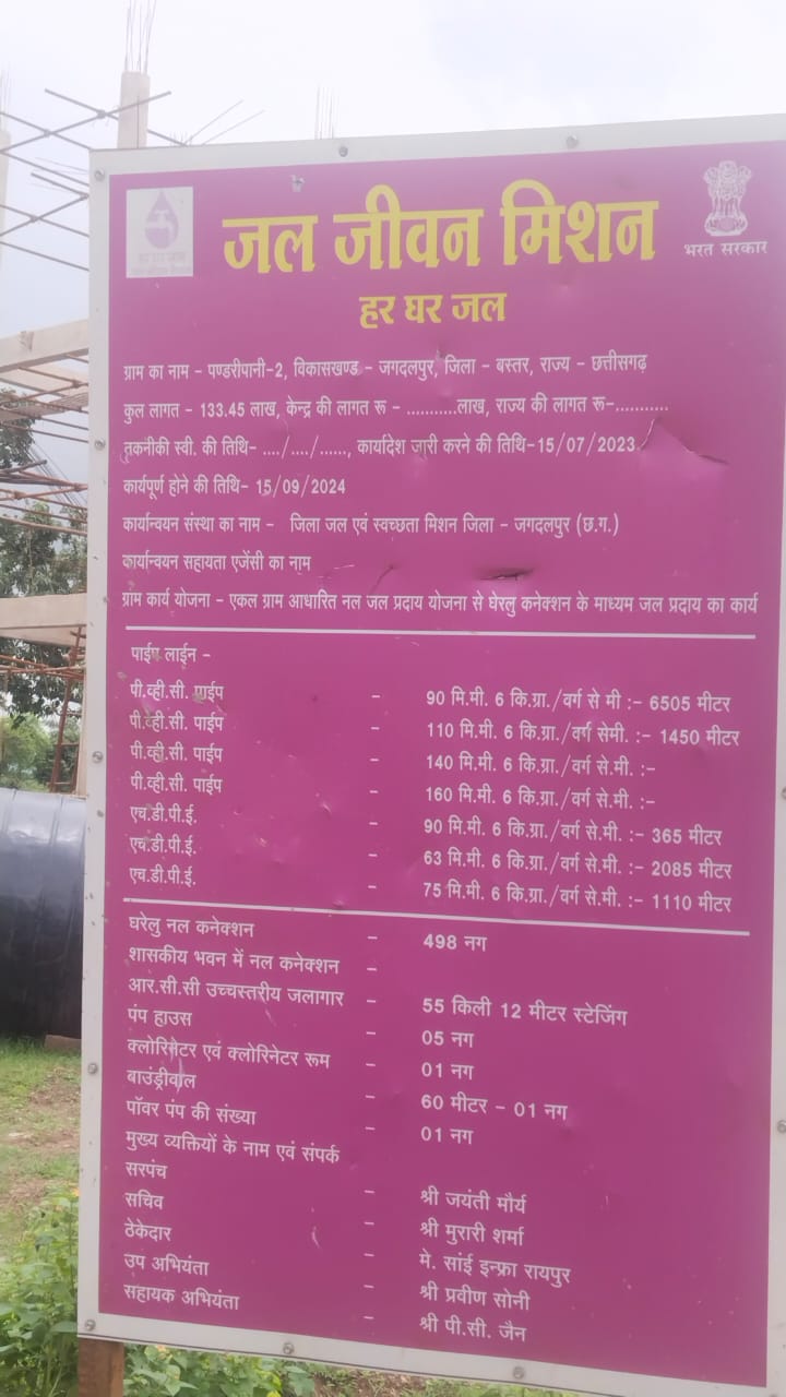 का जवाब देने के लिए विभाग का कोई जिम्मेदार अधिकारी तैयार नहीं है। केंद्र सरकार की महत्वाकांक्षी योजना जल जीवन मिशन का सूत्र वाक्य हर घर जल लेकिन यह सूत्र वाक्य सिर्फ कागजों तक ही सीमित है। धरातल पर मिशन की सच्चाई कोसों दूर है। जल जीवन मिशन के तहत ग्राम पंडरीपानी- 2 में 15 जुलाई 2023 को 133.45 लाख रुपए की लागत से एकल ग्राम आधारित नल जल प्रदाय योजना से घेरलू नल कनेक्शन के माध्यम से जल प्रदाय का कार्य स्वीकृत हुआ है। इसकी स्वस्कृति मिलने से ग्रामीणों में खुशी का ठिकाना नहीं रहा, मगर यह खुशी अब गायब हो चुकी है। दरअसल घरों में पाईप लाईन बिछाए महिनों बीत गए किंतु पानी की एक बूंद भी घरों में नहीं पहुंच पाई है और बारिश के मौसम में पेयजल आपूर्ति होगी उसकी संभावना कम है। दो माह बाद 15 सितंबर 2024 को इस कार्य के पूर्ण होने की मियाद है, किंतु पेयजल आपूर्ति के लिए बोर खनन नहीं होने से इस योजना का लाभ ग्रामीणों को नहीं मिल पाएगा क्योंकि बारिश जारी है और इससे से कार्य प्रभावित हो सकता है।