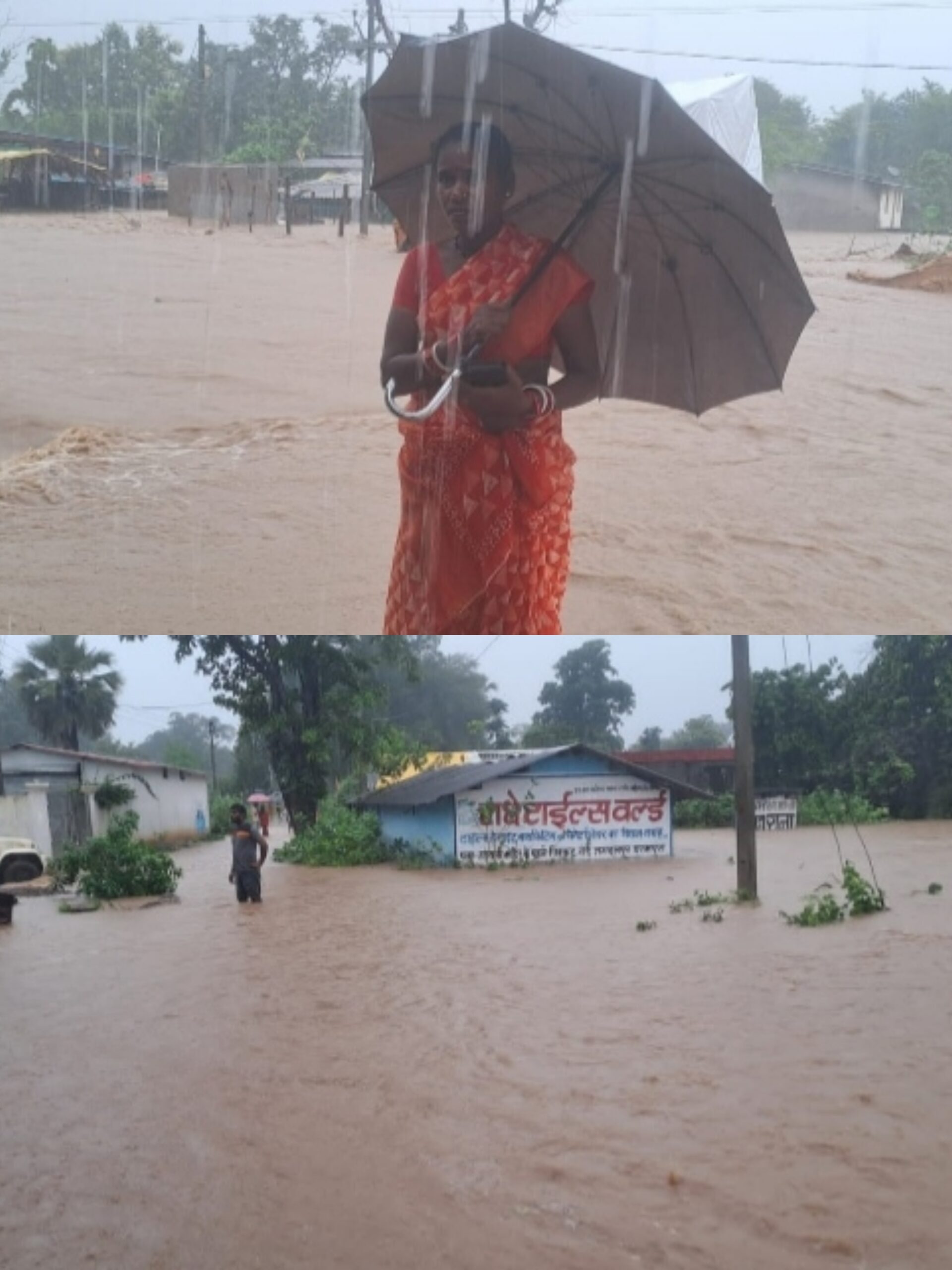 बीजापुर :- बीती रात से बीजापुर जिले में मुसलाधार बारिश हो रही है जिससे जिले का जनजीवन अस्तव्यस्त हो गया है नगर पंचायत भैरमगढ़ के वार्डों में जलभराव होने से बाढ़ की स्थिति निर्मित हो गई है और कई घरों में बाढ़ का पानी घुस गया है। शनिवार सुबह नगर पंचायत अध्यक्ष सुखमती माँझी और भैरमगढ़ के पूर्व नगर पंचायत अध्यक्ष सुखदेव नाग ने अधिकारियों के साथ भैरमगढ़ नगर में आये बाढ़ की स्थिति का जायज़ा लिया और अधिकारियों को बाढ़ की स्थिति से लोगों को निजात दिलाने के लिए आवश्यक उपाय करने के निर्देश दी है। नगर पंचायत अध्यक्ष सुखमती माँझी ने बाढ़ पीड़ितों की मदद करने और लोगों से सतर्क रहने की अपील की है।