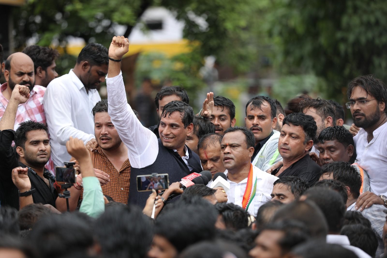 प्रदेश कांग्रेस अध्यक्ष दीपक बैज ने सभा को संबोधित करते हुए कहा कि कांग्रेस की लड़ाई भाजपा सरकार की लापरवाही के खिलाफ है। कानून व्यवस्था पूरी तरीके से बदहाल है। हमारी लड़ाई जनता के हित और सुरक्षा के लिए है। हम विधानसभा के बाहर सड़कों पर लड़ने के लिये तैयार हैं। बरसते पानी में इतनी बड़ी संख्या में कांग्रेसजन आए हैं, आंधी, तूफान आ जाए कोई ताकत हमें नही रोक सकती। यह विधानसभा घेराव सरकार की नाकामी को लेकर है। साय सरकार की 6 महीनें में छत्तीसगढ़ अपराधगढ़ बन गया हैं। 5 सालों तक बस्तर शांत हुआ करता था, अब पूरी तरीके से अशांत हो गया है। आदिवासियों को नक्सली बताकर मारा जा रहा है। भाजपा की सरकार जनता के बीच अपना विश्वास खो चुकी है। साय सरकार ने शांत छत्तीसगढ़ को अपराध गढ़ बना दिया है। गृहमंत्री का गृह जिला कवर्धा में तो अपराध बहुत ज्यादा हो रहा है। हम विधानसभा का घेराव करने जा रहे हैं। सड़क से लेकर सदन तक लड़ाई होगी। हमारे 35 विधायक सदन के अंदर लडेंगे। बलौदाबाजार में कलेक्टर और एसपी कार्यालय जला दिए जाते हैं। क्या यही सुशासन है? छत्तीसगढ़ जंगल राज चल रहा है। धूप हो, गर्मी हो या बरसात हो हम सब सरकार के किले को भेदने के लिए तैयार हैं। ये तो झांकी है लड़ाई पूरी तरह बाकी है। जनता के हितों के लिए हम संघर्ष करते रहेंगे। सरकार हमारे प्रदर्शन से डर गई है। बस्तर, सरगुजा और अन्य जिलों से आने वाले हमारे कार्यकताओं को रोकने का प्रयास किया जा रहा है, लेकिन हमारे लोग बिना डरे यहां पहुंच रहे है जनता के लिये हम हर जुल्म को सहेंगे।