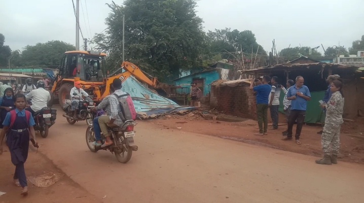 बकावंड। कलेक्टर बस्तर के निर्देश पर प्रशासन के आला अधिकारियों ने सोमवार को बकावंड मुख्य मार्ग से अतिक्रमण हटाने की कार्रवाई शुरू कर दी है। इसमें सड़क किनारे शेड बनाकर चिकन, मछली व सब्जी बेचकर जीवन यापन कर रहे पांच गरीबों की गुमटियों को बड़ी संख्या में पुलिस जवानों की मौजूदगी में बुलडोजर से नेस्तनाबूद कर दिया गया। इन दुकानदारों को पूर्व में नोटिस दिए गए थे। इसके अलावा सड़क किनारे की शेष दुकानों का चिन्हांकन कर अतिक्रमण हटाने उन्हें 10 दिन की मोहलत दी जा रही है। प्रशासन की ओर से यह व्यवस्था दी गई है कि सड़क किनारे जितनी भी मछली मुर्गा दुकानें हैं, उन्हें अन्यत्र एक जगह दी जाए। प्रशासन की इस कार्रवाई से ग्रामीणों में काफी हर्ष का माहौल है वहीं जिनके दुकान तोड़े गए हैं, उनका कहना है कि प्रशासन चेहरा देखकर काम न करे। इससे पूर्व सर्वे कर जैसी मार्किंग की गई थी, उसके अनुसार सभी पर समान कार्रवाई हो। गौरतलब है कि बकावंड मुख्य मार्ग पर दोनों तरफ फुटपाथ पर भी दुकानों का कब्जा हो चला है। इस वजह से आए दिन घंटों जाम लग रहा है और लंबे समय से सड़क चौड़ीकरण की मांग हो रही है।