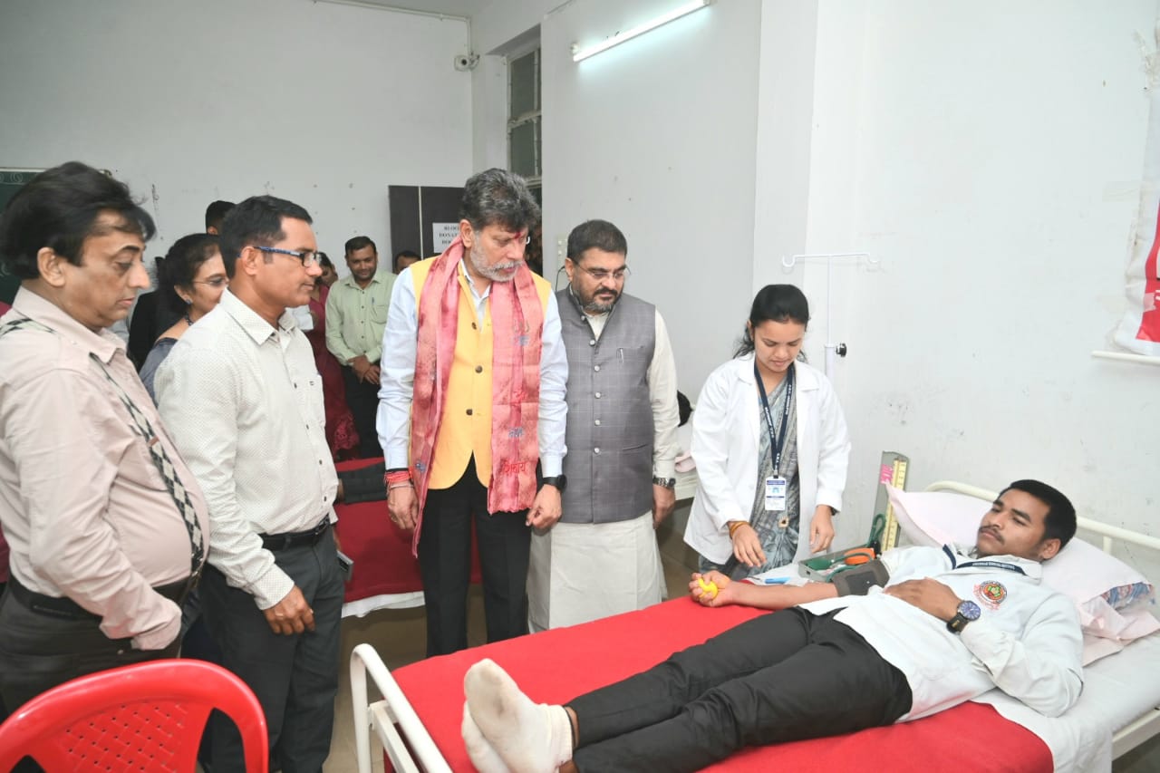 जगदलपुर :- आदेश्वर नर्सिंग इंस्टीट्यूट खम्हारगांव में रक्तदान शिविर का शुभारंभ भाजपा प्रदेश अध्यक्ष एवं विधायक किरण देव द्वारा किया गया। जिसमें भाजपा के वरिष्ठ नेता विद्याशरण तिवारी, संचालक ललित लुक्कड़, विक्रम शर्मा, गोविंद ईनानी एवं नर्सिंग इंस्टीट्यूट के शिक्षक शिक्षिकाएं एवं विद्यार्थी उपस्थित थे। इस अवसर पर विधायक किरण देव ने कहा रक्तदान एक पुण्य का कार्य है। आदेश्वर नर्सिंग इंस्टीट्यूट के सभी स्टॉफ बधाई के पात्र हैं।