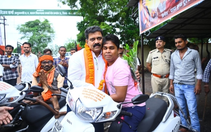 कवर्धा :- प्रदेश के उपमुख्यमंत्री एवं गृहमंत्री विजय शर्मा ने कवर्धा प्रवास के दौरान विधायक कार्यालय में जिले के 25 दिव्यांगजनों को पेट्रोल चलित स्कूटी वितरण किया। उन्होंने इस अवसर पर दूर-दराज से आए दिव्यांगजनों से आत्मीयता से मुलाकात की और उनके जीवन मे आने वाले समस्याओं से रूबरू भी हुए। उन्होंने कहा कि प्रदेश की विष्णु देव साय की सरकार आपके साथ सहयोग और आर्थिक विकास के लिए हमेशा रहेगी। उन्होंने कहा कि लोगों की सेवा और क्षेत्र विकास हमारी प्राथमिकता में शामिल है। प्राथमिकता में सभी निराकरण किया जा रहा है। उन्होंने कहा दिव्यांगजनों और आमजनों की सेवा मिलती है आत्मीय खुशी मिलती है।