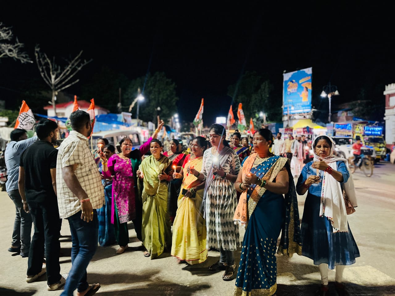 जगदलपुर :- रायगढ़ जिले में आदिवासी युवती से सामूहिक दुराचार के विरोध में छत्तीसगढ़ प्रदेश कांग्रेस अध्यक्ष दीपक बैज के आदेश पर राज्यसभा सांसद फुलोदेवी नेताम के निर्देशन में शहर कांग्रेस अध्यक्ष सुशील मौर्य की उपस्थिति में बस्तर जिला महिला कांग्रेस शहर अध्यक्ष लता निषाद व ग्रामीण अध्यक्ष चंपा ठाकुर के नेतृत्व में महिला कांग्रेस की पदाधिकारी कार्यकर्ताओं ने कैंडल मार्च निकाल कर विरोध प्रदर्शन किया।ने