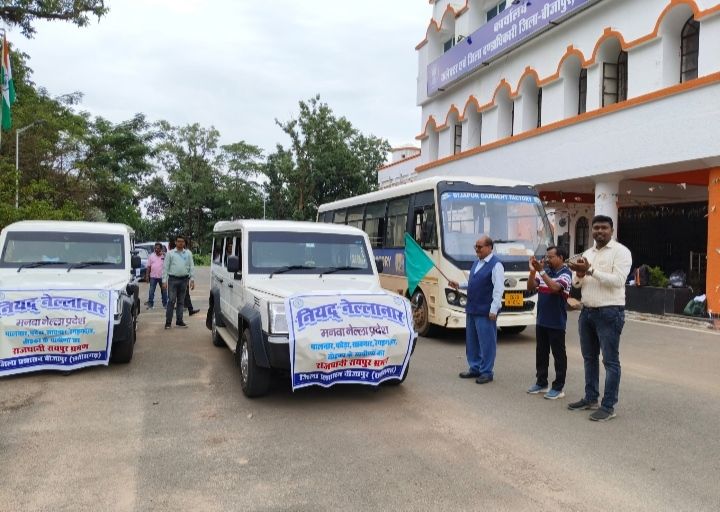 कलेक्टर श्री अनुराग पाण्डेय वाहन को हरी झंडी दिखाकर रवाना किया। नियद नेल्लानार योजना अंतर्गत दूरस्थ क्षेत्र के गांव पालनार, पदेड़ा, सावनार रेगडगटटा तोडका के 32 युवा आज राजधानी के लिए रवाना हुए ।कलेक्टर श्री अनुराग पाण्डेय ने बताया कि छत्तीसगढ़ शासन की महत्वाकांक्षी योजना नियद नेल्लानार के तहत अंदरुनी क्षेत्रों में आज प्रशासन की पहुंच सुनिश्चित हो रही है। इन गांवों में पहले प्रशासन की पहुंच नहीं थी। माओवादी दहशत के गिरफ्त में यह गांव थे जो नियद नेल्लानार योजना के तहत मुख्यधारा से अब जुड़ने लगे हैं। इन गांवों के युवाओं ने स्वस्फूर्त होकर रायपुर भ्रमण के लिए इच्छा जाहिर की युवाओं के उत्साह को देखते हुए जिला प्रशासन द्वारा नियद नेल्लानार से मनवा प्रदेश योजना के तहत प्रथम चरण में 300 युवाओं को रायपुर भेजा जा रहा है। यह योजना सतत् रूप से चलती रहेगी अंदरूनी क्षेत्र के युवा गांव से बाहर मिलकर बडे़-बड़े शहरों में भ्रमण करेगें और शहरी उद्योग, वाणिज्य, पर्यटन सहित विभिन्न क्षेत्रों में हो रहे विकास का अवलोकन करेगें और अपने गांव के ग्रामीणों को बताएंगे। कि किस तरह माओवादियों द्वारा भ्रम का माहौल बनाकर उनको विकास से वंचित रखा था। अंदरूनी क्षेत्रों के युवाओं में उत्साह का माहौल देखने को मिल रहा है।