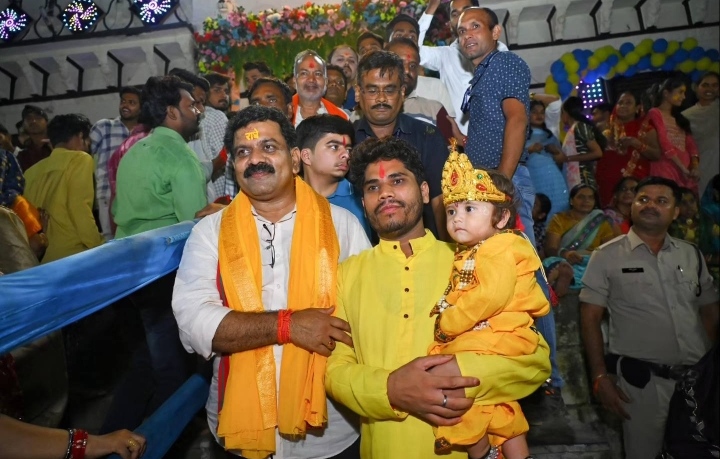 कवर्धा,,,कृष्ण जन्माष्टमी के दिन प्रदेश के उपमुख्यमंत्री व गृहमंत्री श्री विजय शर्मा श्रीकृष्ण जन्माष्टमी के पावन अवसर पर कवर्धा के प्रसिद्ध श्री राधा कृष्ण बड़े मंदिर में प्रभु के दर्शन कर आर्शीवाद ली। उपमुख्यमंत्री श्री शर्मा ने मंदिर में श्री राधा-कृष्ण की पूजा-अर्चना कर प्रदेश के विकास और समृद्धि के लिए प्रार्थना की। उन्होंने मंदिर में उपस्थित भक्तों से भेंट कर उन्हें जन्माष्टमी की बधाई दी। इस अवसर पर श्री कैलाश चद्रवंशी, श्री मनीराम साहू, श्री खिलेश्वर साहू, श्री उमंग पाण्डेय, श्री निर्मल द्धिवेदी, श्री नरेन्द्र मानिकपुरी, श्री अजय सिंह ठाकुर सहित जनप्रतिनिधि, श्रद्धालुगण उपस्थित थे।