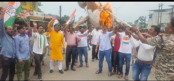 बीजापुर:-प्रदेश कॉंग्रेस कमेटी के निर्देशानुसार जिला कांग्रेस कमेटी बीजापुर ने भिलाई-दुर्ग में कांग्रेस कार्यकर्ताओं के साथ भाजपा सरकार के इशारे पर हुए लाठी चार्ज और जबरन FIR के विरोध में जिला मुख्यालय बीजापुर में मुख्यमंत्री विष्णुदेव साय और गृह मंत्री विजय शर्मा का पुतला दहन कर भाजपा सरकार के खिलाफ जबरदस्त विरोध प्रदर्शन किया गया है।