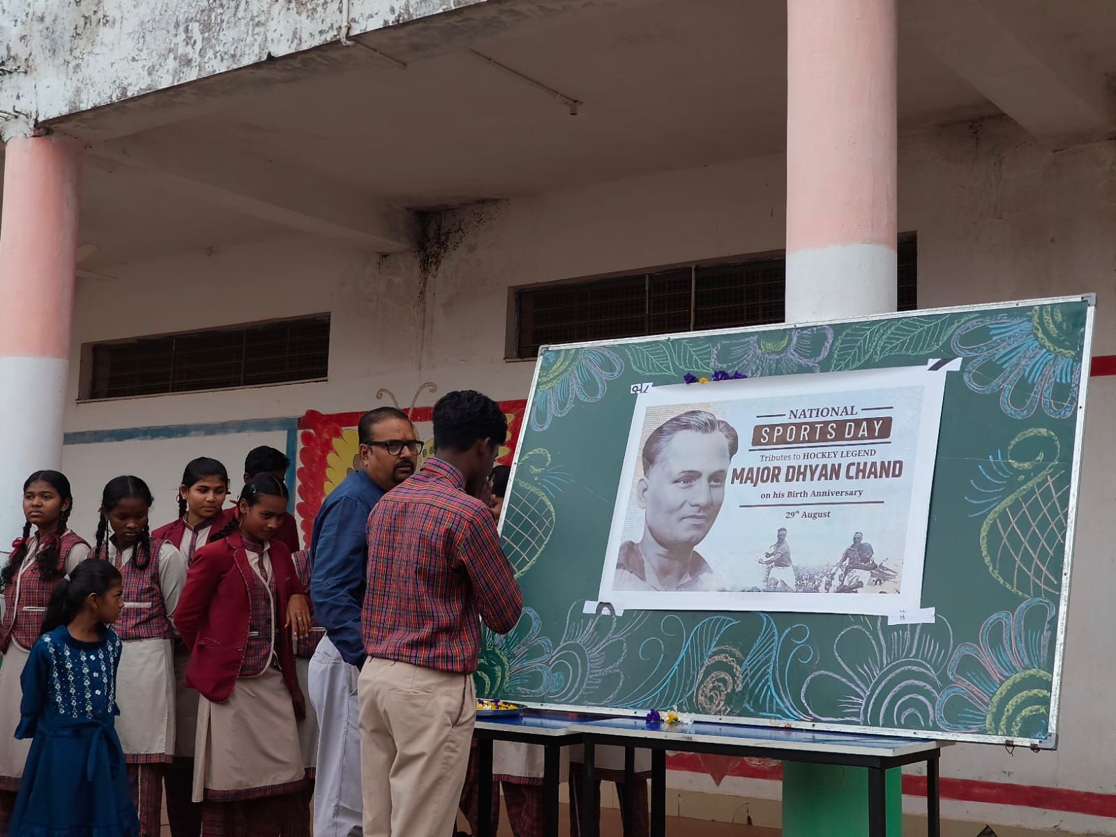 इस दौरान प्राचार्य मनोज शंकर ने बच्चों को संबोधित करते हुए कहा कि 29 अगस्त 1905 को इलाहाबाद में जन्मे ध्यानचंद की जयंती पर हर साल देश में 29 अगस्त को खेल दिवस मनाया जाता है। भारत के महान हॉकी खिलाड़ी मेजर ध्यानचंद ने तीन ओलंपिक खेलों में भारत का प्रतिनिधित्व किया था। 1928, 1932 और 1936 के ओलंपिक में उनके रहते हुए टीम ने कमाल किया था और स्वर्ण पदक जीतने में सफलता पाई थी। देश में खेलों की परंपरा को याद करने के लिए और मेजर ध्यानचंद को पुष्पांजलि अर्पित करने के लिए 29 अगस्त को राष्ट्रीय खेल दिवस मनाया जाता है और इसी क्रम में डीएवी मुख्यमंत्री पब्लिक स्कूल मे हॉकी के जादूगर मेजर ध्यानचंद जी की 119 वीं जयंती मनाई गई। कार्यक्रम का शुभारंभ प्रार्थना सभा में मेजर ध्यानचंद के छायाचित्र के समक्ष प्राचार्य मनोज शंकर एवं कैबिनेट स्पोर्ट के कप्तान द्वारा पुष्प अर्पित किया गया। प्राचार्य मनोज शंकर ने बताया कि मेजर ध्यानचंद ने सेना में रहते हुए राष्ट्रीय अंतरराष्ट्रीय स्तर पर हॉकी प्रतियोगिताएं जीती और भारत का नाम रोशन किया। भारतीय हॉकी में उनके योगदान के लिए उन्हें पद्म भूषण से सम्मानित किया गया। उन्होंने बताया कि राजीव गांधी खेल रत्न पुरस्कार को बदलकर मेजर ध्यान चंद पुरस्कार रखा गया।पढ़ाई के साथ ही शारीरिक विकास के लिए खेल भी आवश्यक होता है। खेल के क्षेत्र में भी जाकर हम अपना अच्छा भविष्य बना सकते हैं। शिक्षक देवसिंह नेताम ने कहा कि भारत में हॉकी के जादूगर मेजर ध्यानचंद का नाम ऐसे लोगों में शुमार है जिन्होंने अपने खेल से भारत को ओलंपिक खेलों की हॉकी स्पर्धा में स्वर्णिम सफलता दिलाने के साथ ही परंपरागत एशियाई हॉकी का दबदबा भी कायम किया। उनका जन्म राजपूत परिवार में हुआ था अपने पिता समेश्वर सिंह की तरह वे भारतीय सेना में शामिल हो गए और वहीं उन्हें इस खेल से लगाव हो गया। चांदनी रात में ही अभ्यास करते थे और इसलिए उनके साथियों ने उनका नाम ध्यानचंद रख दिया। इस अवसर पर विद्यालय में अनेक खेल प्रतियोगिताएं करवाई गई जिसमे सभी विद्यार्थियों ने उत्साह के साथ बढ़-चढ़कर हिस्सा लिया। इस अवसर पर विद्यालय के समस्त छात्र -छात्राएं, शिक्षक और कर्मचारी उपस्थित थे।