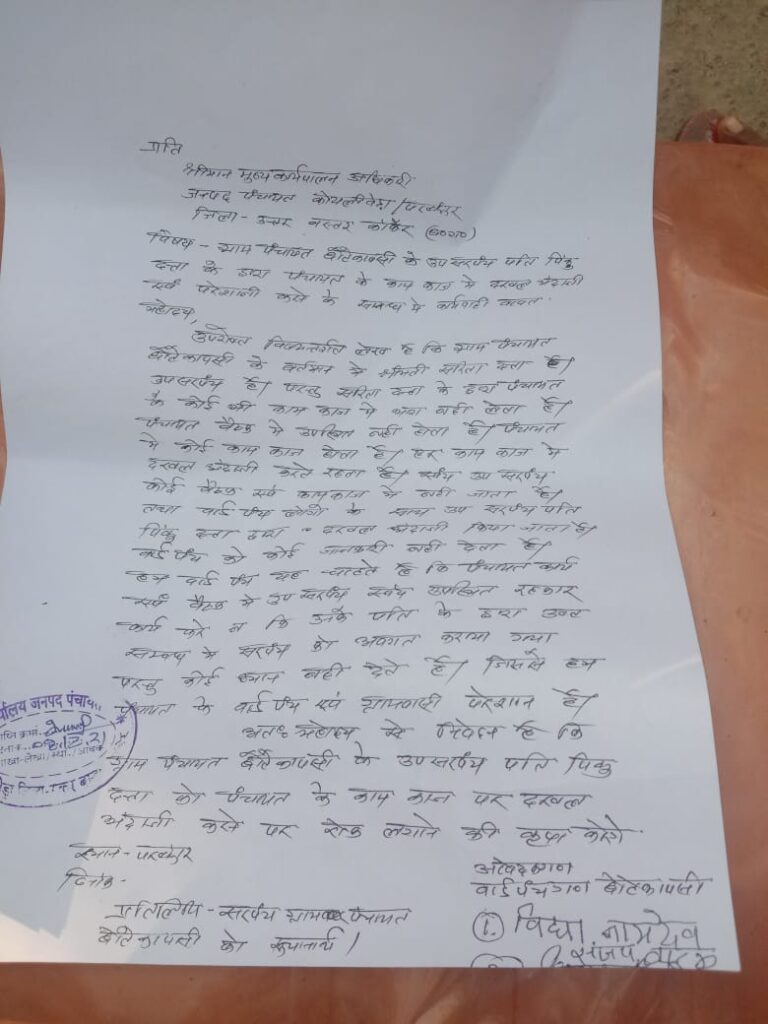 कापसी पंचायत के काम में उपसरपंच पति के दखल से वार्ड पंच परेशान,CEO को दिया आवेदन