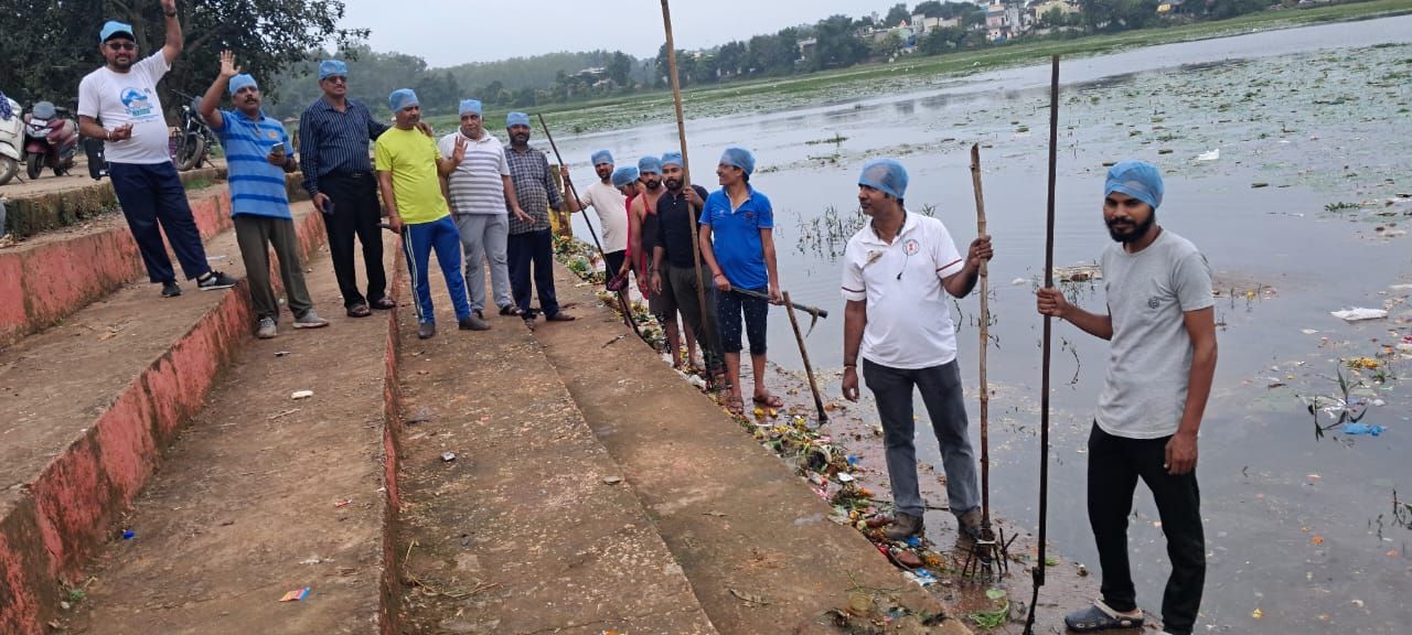 गंगा मुंडा तालाब की स्वछता के लिए जुटे पर्यावरण प्रेमी