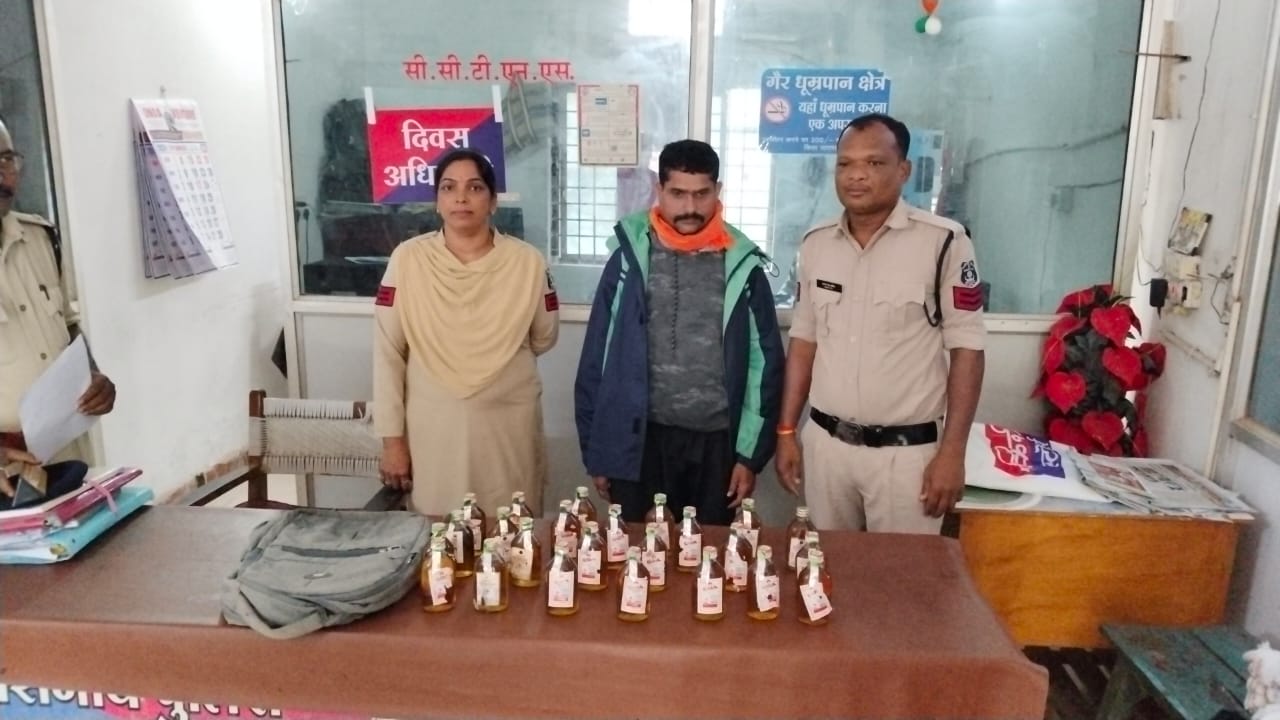 नगर के बस स्टैंड रोड़ स्थित शासकीय शराब की दुकान के बाहर निजी सुरक्षाकर्मी मोहन सिंह ठाकुर को बस स्टैंड की शराब दुकान से 24 नग गोवा स्पेशल व्हीस्की ले जाते पकड़ा गया है। जप्त शराब की कीमत 3120 रुपए है। उससे नगदी 260 रुपए भी जप्त किए गए हैं। कोतवाली पुलिस ने शराब तस्कर को तो पकड़ लिया किंतु ईमानदारी से जांच नहीं की कि उसने शराब किस दुकान से खरीदी और उस शराब का बैच नंबर क्या है? शराब तस्करी करने वाला गांव का है लेकिन शराब दुकान के बाहर चौकीदारी करते -करते वह शराब तस्कर बन गया। ऐसा प्रतीत होता है कि शराब दुकान के कर्मचारियों की सांठगांठ कर वह शराब तस्कर बन गया है।