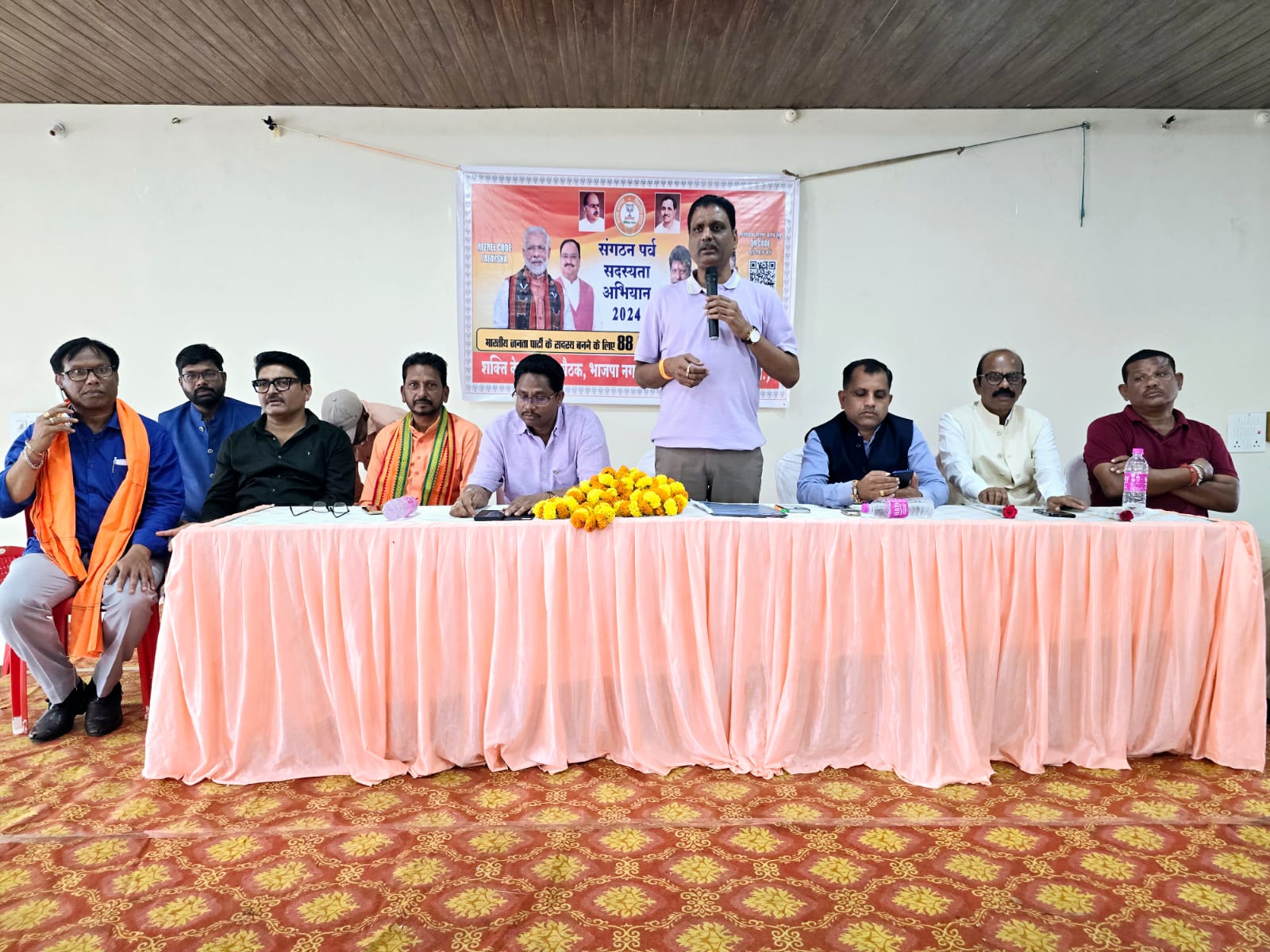 भाजपा बस्तर संभाग प्रभारी रजनीश सिंह ने कहा कि भारतीय जनता पार्टी राष्ट्र के निर्माण के लिए कार्य करती है। देश के वैभव को शिखर तक पहुंचाने अधिक से अधिक लोग भाजपा की सदस्यता ग्रहण कर रहे हैं। मां दंतेश्वरी शक्ति केंद्र में बूथ स्तर पर भाजपा बस्तर संभाग प्रभारी रजनीश सिंह ने शक्ति केंद्र प्रभारी मनोहर दत्त तिवारी, सहयोगी प्रकाश झा, संयोजक राजपाल कसेर, सह प्रभारी दशरथ गुप्ता सहित भाजपा कार्यकर्ताओं से मुलाकात व चर्चा की और सदस्यता अभियान को सर्वोच्च प्राथमिकता में लेकर निर्धारित लक्ष्य को पूर्ण करने कहा। प्रभारी रजनीश सिंह ने कहा कि प्रत्येक कार्यकर्ता को पचास सदस्य बनाने हैं और एक-एक बूथ में दो सौ सदस्य बनाना है। हर कार्यकर्ता, पदाधिकारी, निर्वाचित जनप्रतिनिधियों को बूथ स्तर तक पहुंच कर सदस्यता अभियान को आगे बढ़ाना है। भाजपा के कार्यकर्ता लोगों के बीच जाएं, घर-घर पहुंच कर संवाद स्थापित करें और भाजपा की सदस्यता ज्यादा से ज्यादा लोगों को ग्रहण करवाएं। भाजपा बस्तर संभाग प्रभारी रजनीश सिंह ने कहा कि भाजपा का बल कार्यकर्ता हैं और संगठन को मज़बूती देने नए सदस्य बनाने कर्मठता से पूरी शक्ति लगाएं। रजनीश सिंह ने बूथ स्तर पर निवासरत लोगों से सदस्य बनने आग्रह किया और राष्ट्र की सतत सेवा में भाजपा से जुड़कर आगे आने कहा। भाजपा बस्तर संभाग प्रभारी रजनीश सिंह के शक्ति केंद्र सदस्यता कार्यक्रम के दौरान भाजपा जिला अध्यक्ष रूपसिंह मंडावी, वेदप्रकाश पांडेय, सुरेश गुप्ता, राकेश तिवारी, आर्येन्द्र आर्य, संग्राम सिंह राणा, अतुल सिम्हा, प्रकाश झा, संतोष बाजपेयी, योगेश शुक्ला, रजिता पाणिग्रही, जगत चौहान, माधवी मंडल, प्रीतम बघेल, कमल दास, रतन नाग, अखिलेश शुक्ला, शांति कश्यप, लक्ष्मी कश्यप, तुलसी कश्यप, लक्ष्मी कर्मा, सुलोचना मंडावी, मनीमा सागर, पार्वती सागर आदि उपस्थित थे।