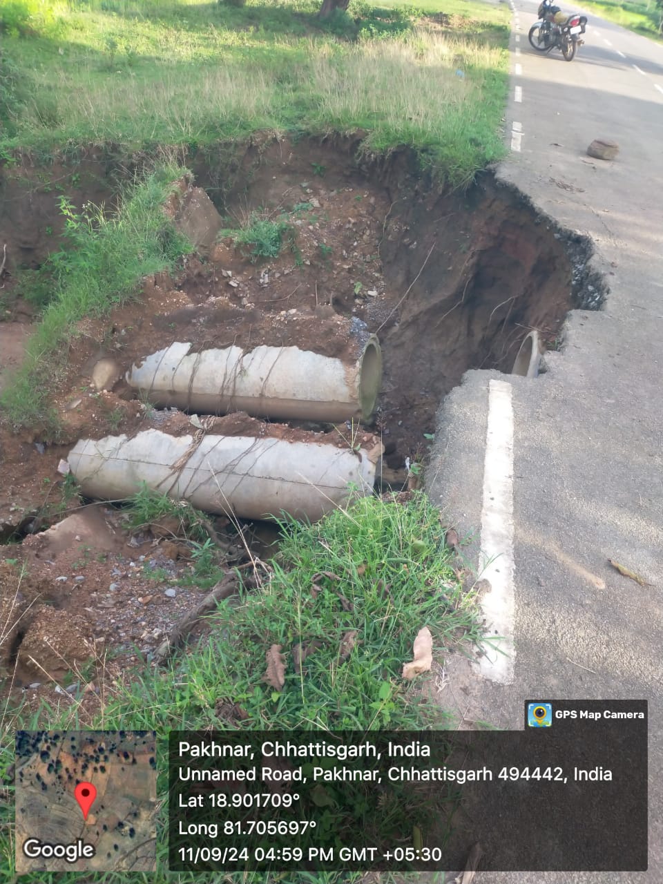 कई करोड़ रुपए खर्च करने के बाद ऐसा घटिया निर्माण कराया गया है कि सड़क बरसात की भी मार नहीं झेल पाई। यह सड़क लोक निर्माण विभाग जगदलपुर बस्तर के डिवीजन-2 के अंतर्गत आती है। इस सड़क का निर्माण लोक निर्माण विभाग के एसडीओ तोमर और सब इंजीनियर मेश्राम की देखरेख में बचेली के फर्म पीएसए कंस्ट्रक्शन द्वारा कराया गया है। सड़क निर्माण में बरती गई अनियमितता का ही नतीजा है कि मादमपाल के पास सड़क का एक बड़ा भाग ध्वस्त होकर धरती में समा गया है। इस जगह पर पुलिया भी बनाया गया है, जिसमें सीमेंट के पाईप डाले गए हैं। सड़क उखड़ने से सभी पाईप बाहर आ गए हैं। पुलिया बनाने के दौरान मिट्टी, गिट्टी और मुरुम का भराव नहीं किया गया और उसे ढंग से दबाया भी नहीं गया था। इसके कारण सड़क किनारे की मिट्टी का कटाव बारिश में हो गया और सड़क के एक किनारे का चौथाई भाग ध्वस्त हो गया। यह सड़क बस्तर जिले के अति संवेदनशील दरभा ब्लॉक व कटे कल्याण को धुर नक्सल प्रभावित जंगलों से होती हुए दंतेवाड़ा जिले से जोड़ती है। दंतेवाड़ा जिला भी नक्सली गतिविधियों के मामले में अति संवेदनशील है। सड़क के आसपास के गांवों के ग्रामीणों का कहना है कि ठेकेदार और लोक निर्माण विभाग बस्तर के अधिकारियों ने सड़क निर्माण में जमकर अनियमितता बरती है। पूरी सड़क पर गिट्टी मुरुम, बोल्डर आदि का समुचित भराव किए बिना एवं उन्हें सही ढंग से दबाए बिना पक्की सड़क बनाई गई है। इसीलिए सड़क तेजी से खराब हो रही है। ग्रामीणों ने बताया कि पुलिस और विभिन्न सुरक्षा बलों के जवानों से भरे वाहन नक्सल विरोधी अभियान के लिए इस सड़क से गुजरकर जंगलों में जाते हैं। ऐसे में अगर उनके वाहनों के साथ कोई हादसा हो गया, तो लोक निर्माण विभाग को ही इसके लिए जिम्मेदार माना जाएगा।