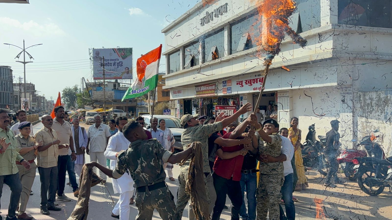 राहुल गांधी के खिलाफ विवादित बोल पर भड़के कांग्रेसी मंत्री और शिवसेना विधायक फूंका पुतला