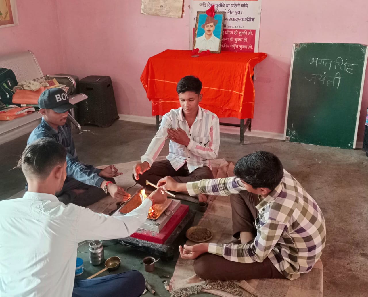 कवर्धा,,,भारत के महान सपूत महान क्रांतिकारी भगत सिंह जी की जयंती पर बाल योग शाला ग्राम जैतपुरी रामचुवा के बाल योग साधकों ने यज्ञ कर उन्हे श्रद्धांजलि अर्पित किया वही दूसरी ओर शासकीय प्राथमिक शाला जैतपुरी में प्रात: काल छात्र – छात्राओं ने भगत सिंह जी के चलचित्र पर सुमन अर्पित कर उन्हें शत शत नमन किया।