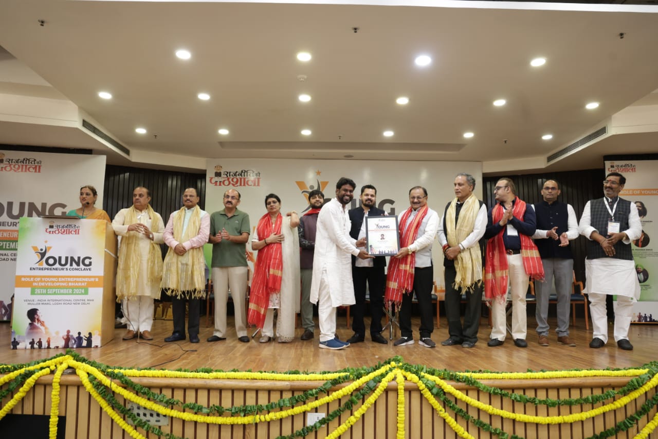 दल्ली राजहरा। नई दिल्ली में एक प्रतिष्ठित एनजीओ द्वारा आयोजित राजनीति की पाठशाला और युवा उद्यमी संगोष्ठी में खनिज नगरी दल्ली राजहरा के युवा राजनेता और समाजसेवी श्याम जायसवाल को सम्मानित किया गया।
