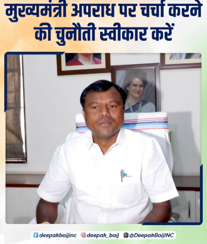 दीपक बैज का मुख्यमंत्री को खुला चैलेंज, अपराधों पर आओ कर लें दो दो बात