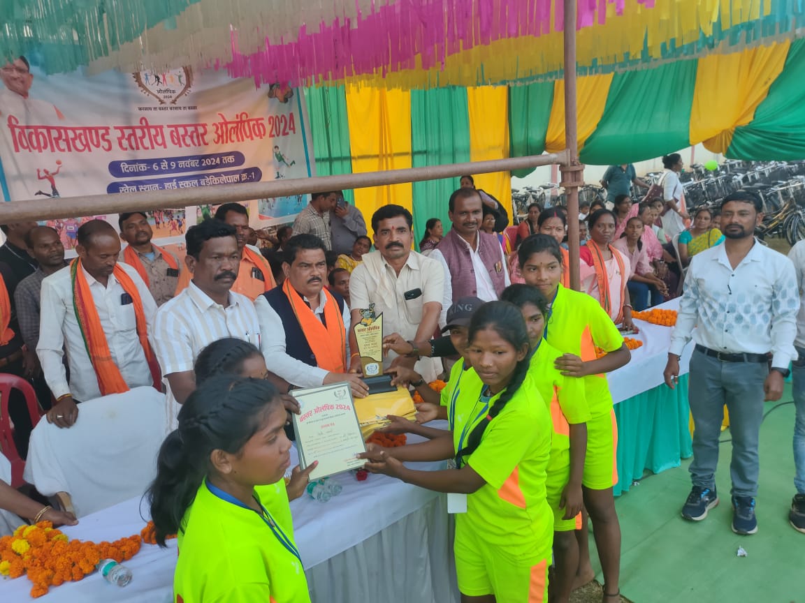 तोकापाल। बस्तर ओलंपिक 2024 के तहत बास्तानार विकासखंड स्तरीय प्रतियोगिता का समापन शनिवार को हुआ।कार्यक्रम के मुख्य अतिथि के रुप में चित्रकोट विधायक विनायक गोयल उपस्थित थे।खेल में उपस्थित सभी प्रतिभागियों को उन्होंने बधाई व शुभकामनाएं दी।