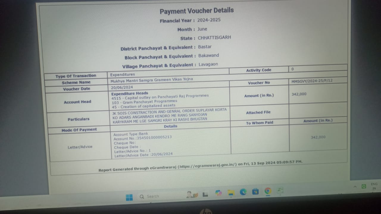 बकावंड। जनपद पंचायत बकावंड की ग्राम पंचायतों में सरकारी धन हड़पने के लिए तरह तरह के रास्ते निकाल लिए गए हैं। किसी और पंचायत के बिल दूसरी पंचायत में लगाकर राशि निकाल ली जा रही है। नीति आयोग और मुख्यमंत्री समग्र ग्राम विकास योजना की राशि की जमकर हेराफेरी चल रही है। ऐसा ही एक बड़ा मामला ग्राम पंचायत लावगांव में सामने आया है। इस पंचायत में कार्य हुआ नहीं है और दूसरी पंचायत में कराए गए काम का भुगतान इस पंचायत से हुआ है।