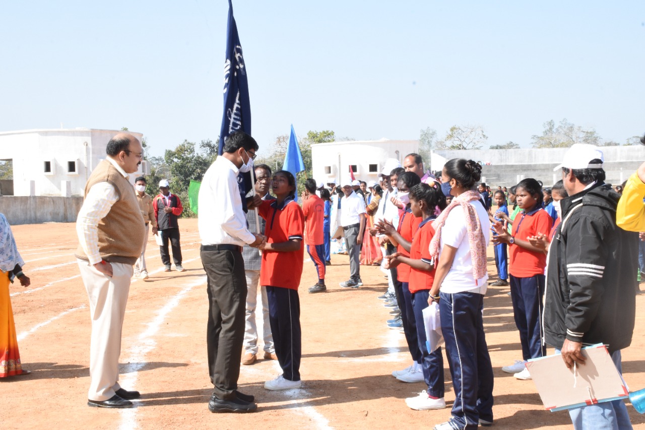बीजापुर :- बीजापुर जिले की एजुकेशन सिटी स्थित स्टेडियम में दो दिवसीय जिला स्तरीय एकलव्य विद्यालय क्रीड़ा महोत्सव का आयोजन किया जा रहा है।कलेक्टर राजेन्द्र कुमार कटारा ने ध्वजारोहण कर आयोजन का शुभारंभ किया,तत्पश्चात प्रतिभागियों से परिचय कर खेल भावना के साथ खेलने की समझाइश देते हुए प्रतिभागियों का उत्साहवर्धन किया।इस दौरान सीईओ जिला पंचायत रविकुमार साहू,एसडीएम बीजापुर देवेश कुमार ध्रुव, सहायक आयुक्त आदिवासी विकास श्रीकांत दुबे सहित अधिकारी-कर्मचारी उपस्थित थे।